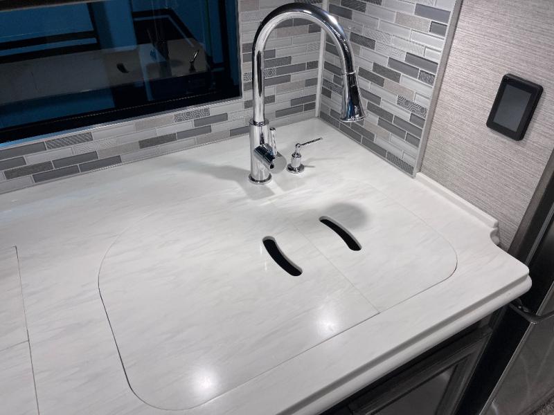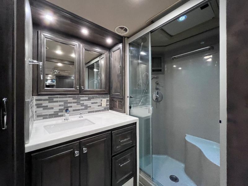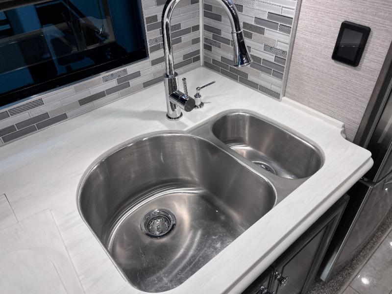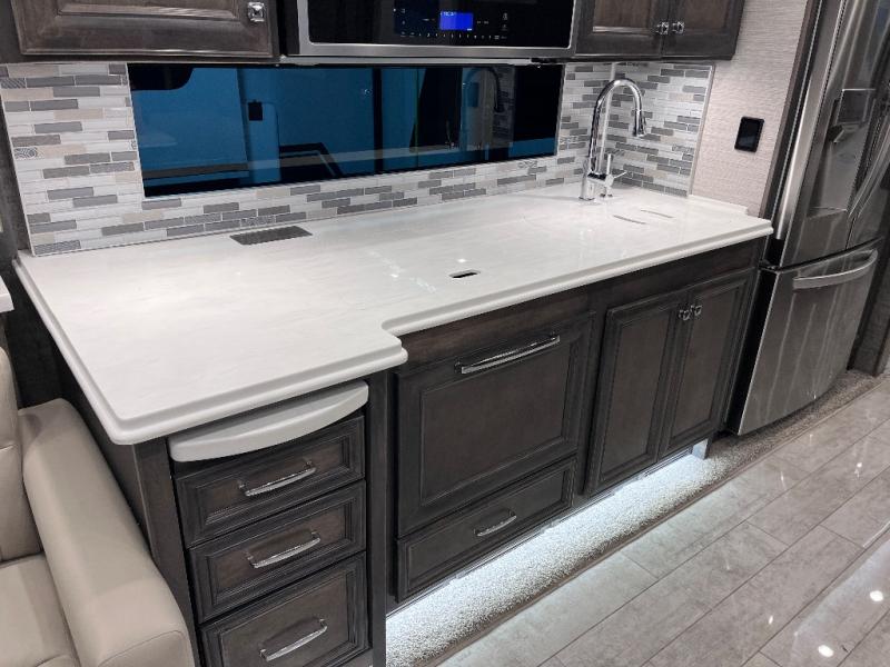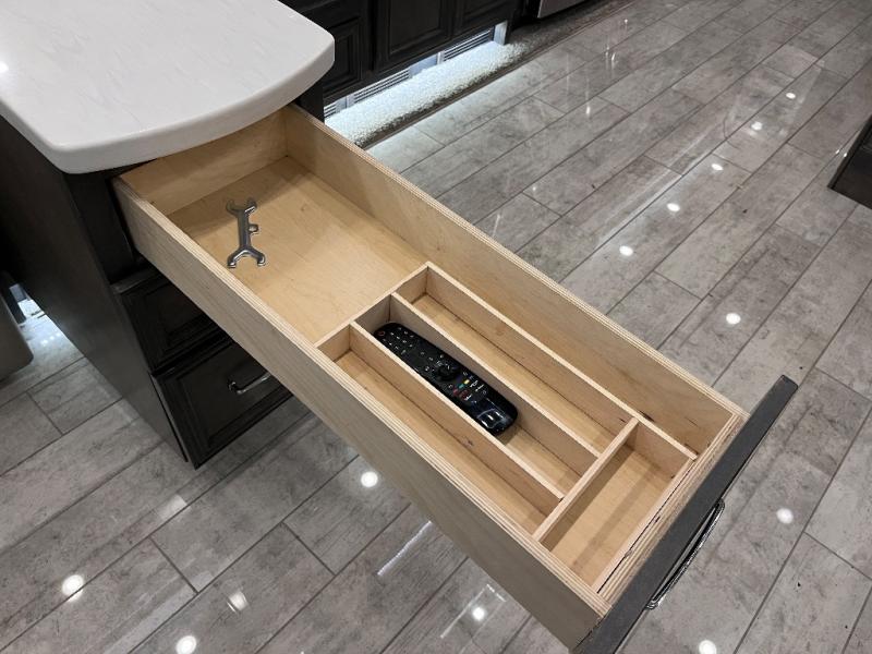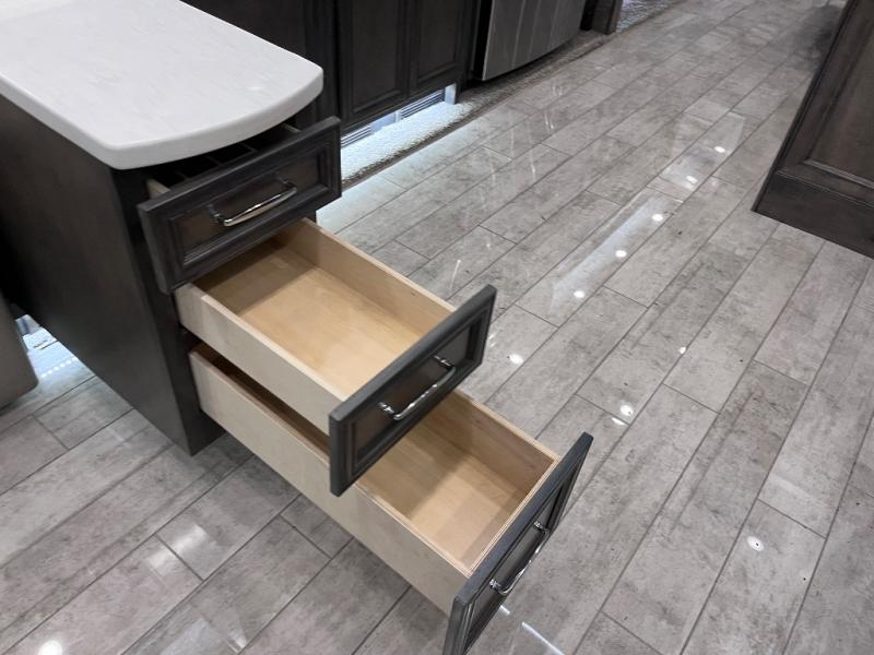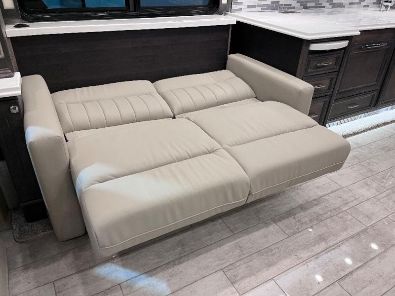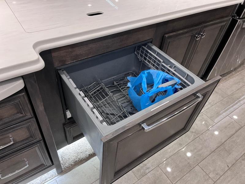 A bath and a half makes life easier on the road with this Phaeton motorhome! The master suite has a queen bed slide across from a wardrobe next a flat panel TV, overhead cabinets, and an egress window, plus access to the full rear bathroom. The bathroom not only has a shower with a seat and a linen closet, but also an area that is prepped to add an optional washer and dryer. The chef can prepare their best meals in the kitchen and clean up will be even easier if you choose to add the optional drawer-type dishwasher. After a long day of traveling, everyone can relax on either the ultraleather air coil sofa bed, the ultraleather DE sofa bed with a lift TV behind it, or play some games at the booth dinette. There are many other options you can add to customize it to fit your style like the optional drop-down front bunk, the recliner with lift TV and fireplace, the U-shaped dinette, a dinette with computer workstation, and theater seating!