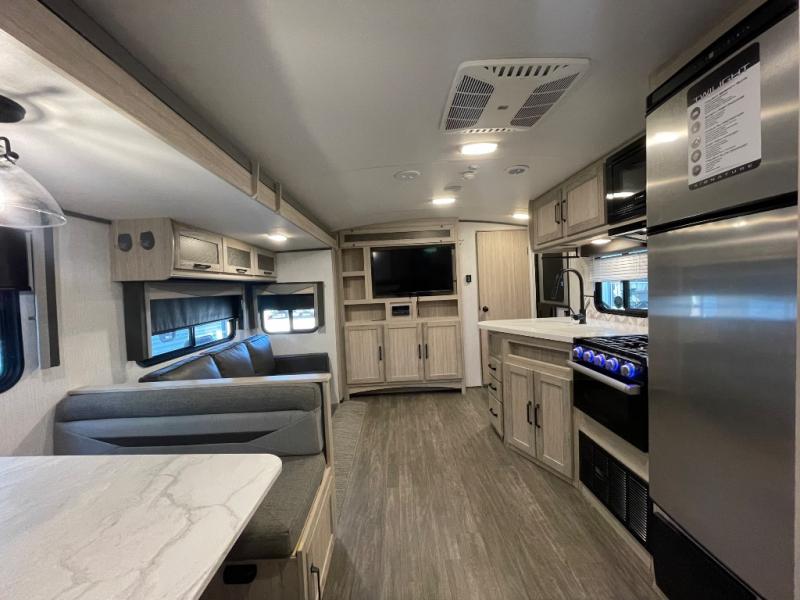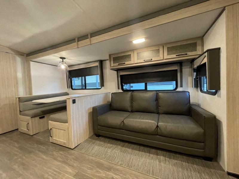 Each one of these Cruiser Twilight Signature travel trailers were designed with the customer in mind! With diverse sleeping capacities, walk-in pantry options, and spacious dining areas, you will have just the right space for friends and family to join you. The powder coated structural I-beam frame has full height cross members approximately every 48" for a more solid floor foundation and more attachment points for the enclosed underbelly. Azdel composite walls create a strong, lightweight, weather and temperature resistant construction that will increase the life of your unit, as well as the walkable roof with Rain-A-Way technology for no flat spots which prevents water from pooling. The slam latch baggage doors with over 40 cu. ft. of pass-through storage offer easy access to all of your outdoor gear. Come find the best model for you today!