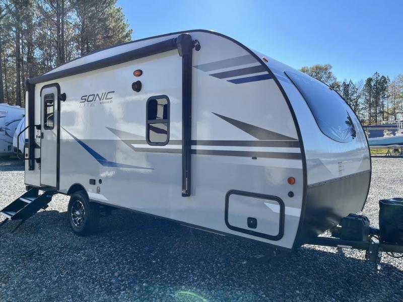With any Sonic Lite travel trailer by Venture RV, you begin with Next Generation in RV frame technology with the NXG frame, AZDEL Onboard composite panels, tongue and groove plywood floor decking, and a tucked rear bumper. The Blast Package 1.3 provides a motion light in the bathroom, a deep round stainless steel sink with cover in the kitchen, and the Venture LevelMate Pro which allows you to use smartphone technology to level the RV, plus a lighted power tongue jack, and WIFI prep to mention a few features. Get ready for comfort and style in a Sonic Lite ultra-lightweight, single-axle travel trailer of your choice!