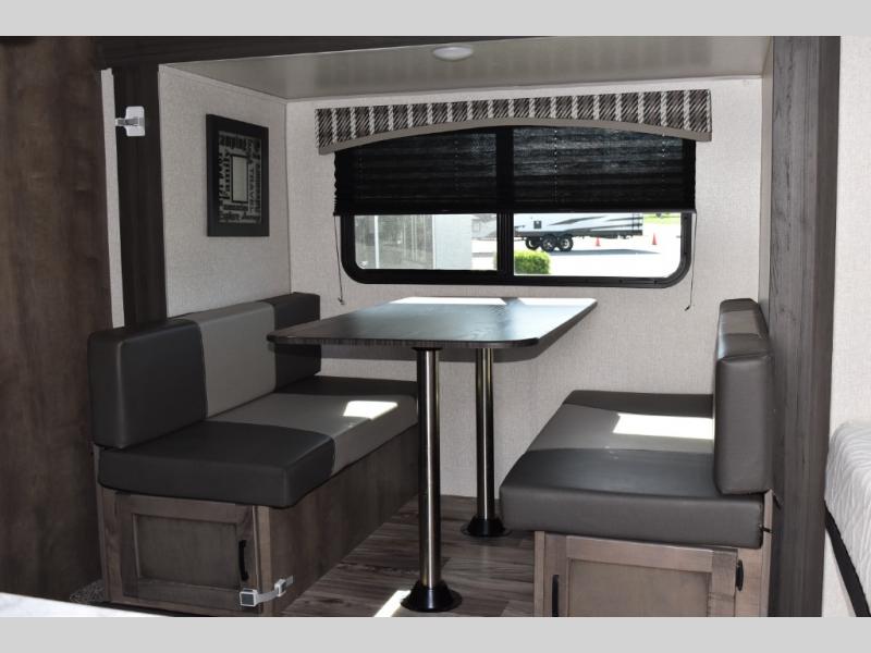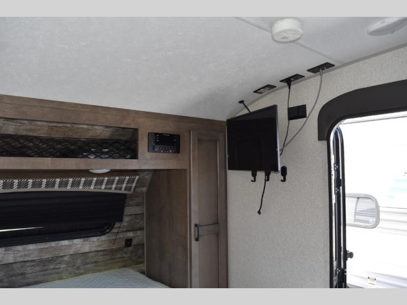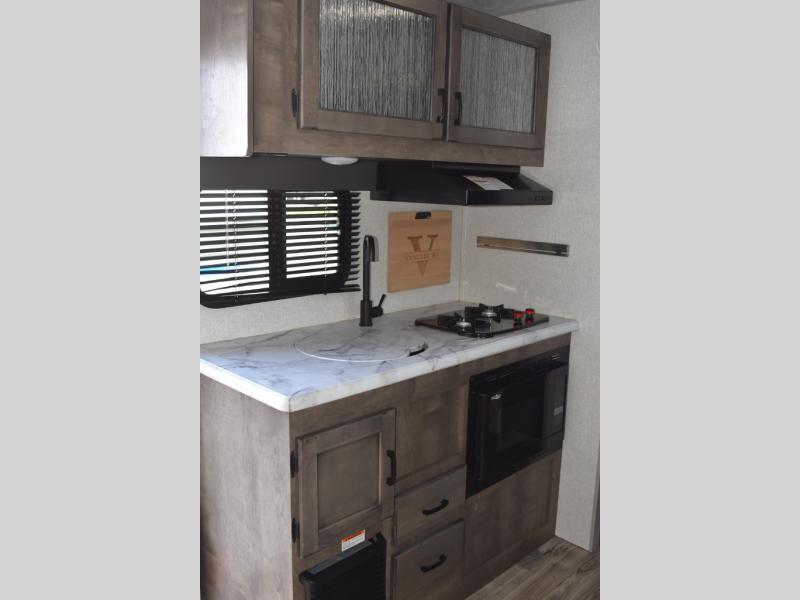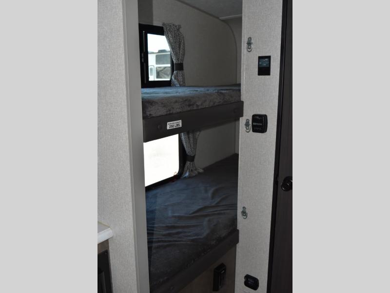 Looking for a family-friendly trailer that is easy to tow, sleeps six and includes a slide for more interior floor space? Step inside using the flip-up solid steps for safety into this Sonic Lite to find a 60" x 75" bed up front with a handy StorMore bedside nightstand with a 110V outlet and USB charging to keep your cellphones at 100%, plus an overhead cabinet for more things. You will love that the rear set of bunk beds is located next to the full bathroom which is helpful at night for the kiddos. You can make meals using the galley kitchen which includes an 8 cu. ft. refrigerator and a convection microwave or use the campfire cafe outside, and dine inside at the booth dinette or outside under the 13' power awning.