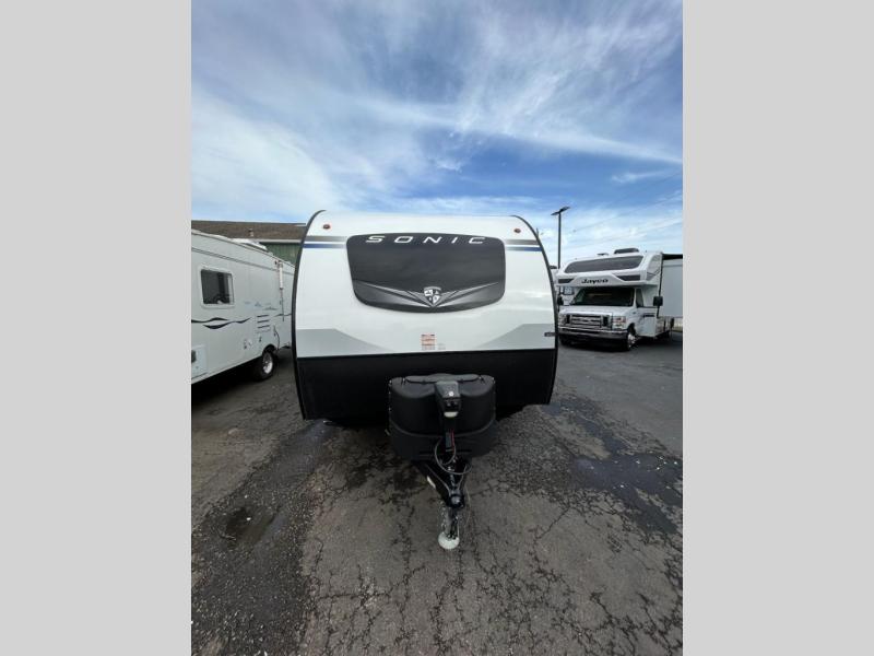 With any Sonic travel trailer by Venture RV, you begin with Next Generation in RV frame technology with the NXG Huck-bolt frame, AZDEL Onboard composite panels, tongue and groove plywood floor decking, radiant foil bubble insulation-wrapped tanks, 360-degree residential fiberglass insulation and radiant foil insulation, plus a forced-air heated and enclosed underbelly which is part of the Weather-Shield package. There is a Highway Package that comes mandatory, and the Discovery Package 1.3 provides a motion light in the bathroom, a dish drying sink cover, and the Venture LevelMate Pro, a power tongue jack, and WIFI prep to mention a few features. Get ready for comfort and style in a Sonic ultra-lightweight, tandem-axle travel trailer of your choice!