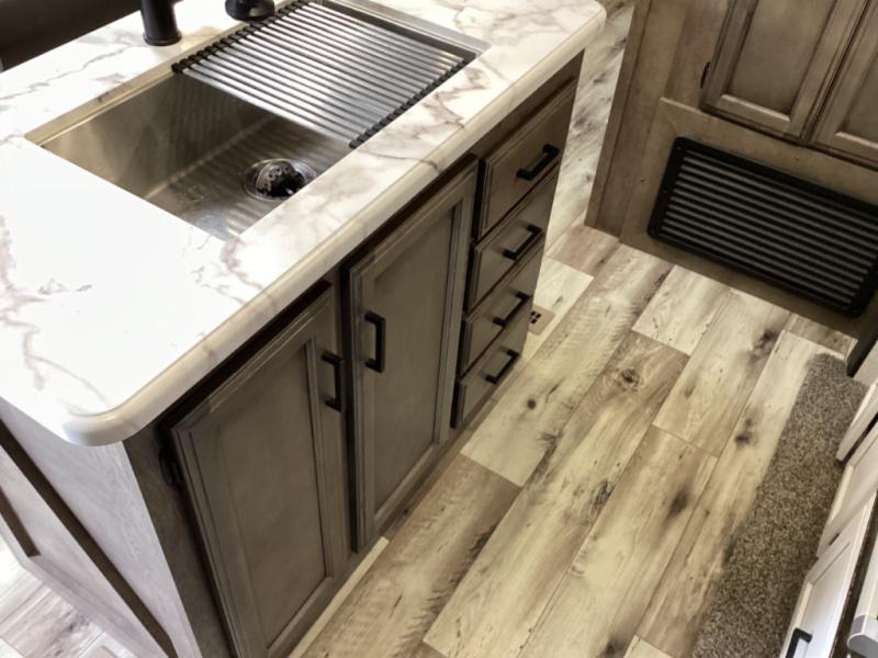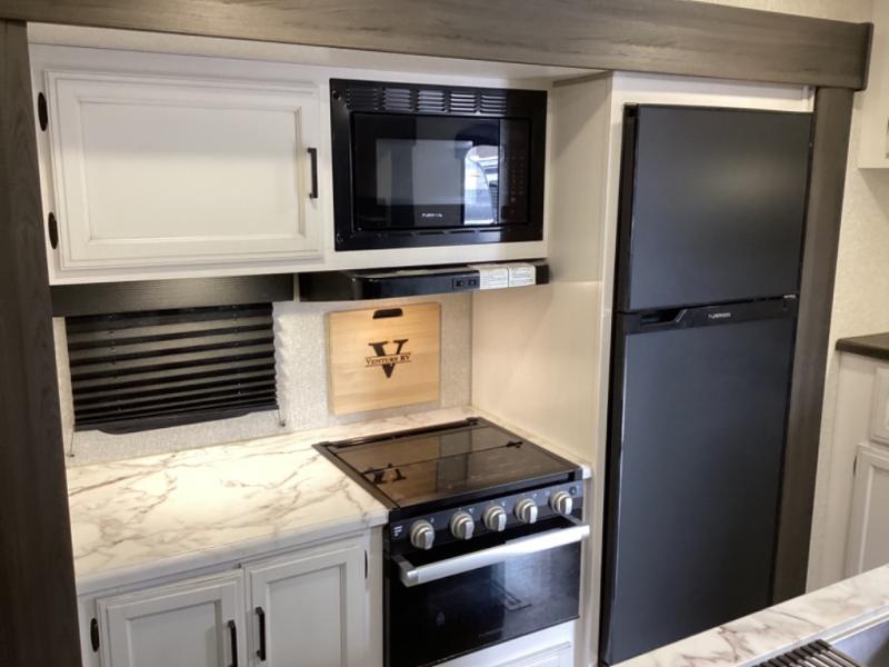 Every Venture RV SportTrek lightweight travel trailer is constructed to offer peace of mind and the comforts home! Their purposeful residential kitchens are packed with handy features like a recessed gas cooktop with glass cover for more countertop space, a sink cover to drain food and dishes which can be rolled out of the way for sink use, and continuous countertops. You will find plenty of storage throughout with unique areas like the under-seat removable storage tubs below the dinette cushions, the oversize, deep heavy-duty pot and pan drawer, and the StorMore nightstands on either side of the bed behind the full-length closets. The magnetic slam-latch baggage doors to the spacious pass-through storage area will hold your outdoor gear in place. They even come with a hot and cold exterior shower and SporTrek's Weather Shield which includes a radiant foil barrier, forced heat, enclosed underbelly, enclosed gate valves, and a reflective PVC roof membrane. What more could you want, come find your favorite model today!