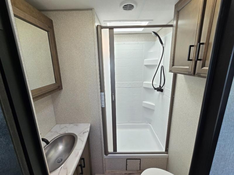 An elegant design and new features come with every one of these Venture RV SportTrek Touring Edition travel trailers! The NXG Huck bolt frame holds these units together and a walkable roof covers them. Heads will turn down the highway and at the campsite with an upgraded graphics package and a painted fiberglass front cap with integrated LED light. The exterior pass-through storage area has slam latch baggage doors with magnetic catches so you don't have to worry about them closing on you and a motion activated light to see your items clearly even at night. Luxury abounds throughout these units, especially with the mandatory Interior Luxury package which comes with washer and dryer prep (varies by model), two 30" frameless fireplaces, and Beauflor wood plank flooring that is easy to clean. Come find your favorite model today!