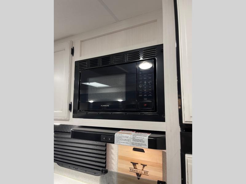 An elegant design and new features come with every one of these Venture RV SportTrek Touring Edition travel trailers! The NXG Huck bolt frame holds these units together and a walkable roof covers them. Heads will turn down the highway and at the campsite with an upgraded graphics package and a painted fiberglass front cap with integrated LED light. The exterior pass-through storage area has slam latch baggage doors with magnetic catches so you don't have to worry about them closing on you and a motion activated light to see your items clearly even at night. Luxury abounds throughout these units, especially with the mandatory Interior Luxury package which comes with washer and dryer prep (varies by model), two 30" frameless fireplaces, and Beauflor wood plank flooring that is easy to clean. Come find your favorite model today!