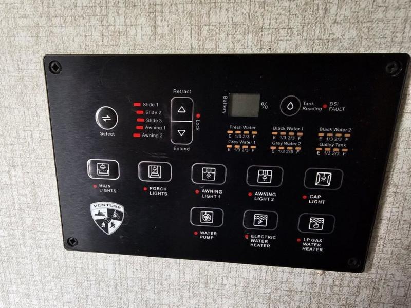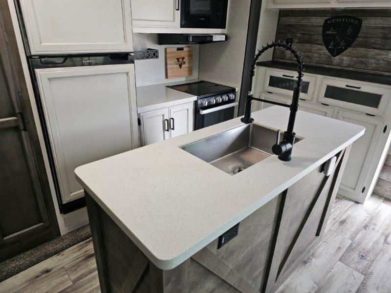 An elegant design and new features come with every one of these Venture RV SportTrek Touring Edition travel trailers! The NXG Huck bolt frame holds these units together and a walkable roof covers them. Heads will turn down the highway and at the campsite with an upgraded graphics package and a painted fiberglass front cap with integrated LED light. The exterior pass-through storage area has slam latch baggage doors with magnetic catches so you don't have to worry about them closing on you and a motion activated light to see your items clearly even at night. Luxury abounds throughout these units, especially with the mandatory Interior Luxury package which comes with washer and dryer prep (varies by model), two 30" frameless fireplaces, and Beauflor wood plank flooring that is easy to clean. Come find your favorite model today!