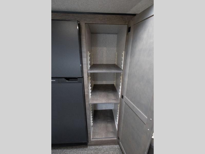 Sleep tight in this travel trailer with a sleep tight queen bed in the rear private bedroom! Freshen up each morning in the full bathroom with the 30" x 36" shower then head to the kitchen and fry some eggs up on the three burner cooktop. You can enjoy your meals at the front 88" x 42" U-shaped dinette, as well as transform it into an extra sleeping space. The 70" sofa offers a comfortable place for an afternoon nap and for watching a movie with the entertainment center. Behind the entertainment center is a walk-in pantry with coat hooks for double use. Don't leave behind any outdoor gear, simply store it in the exterior pass-through storage area!