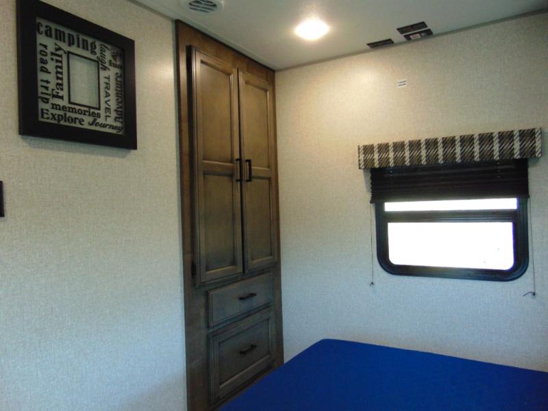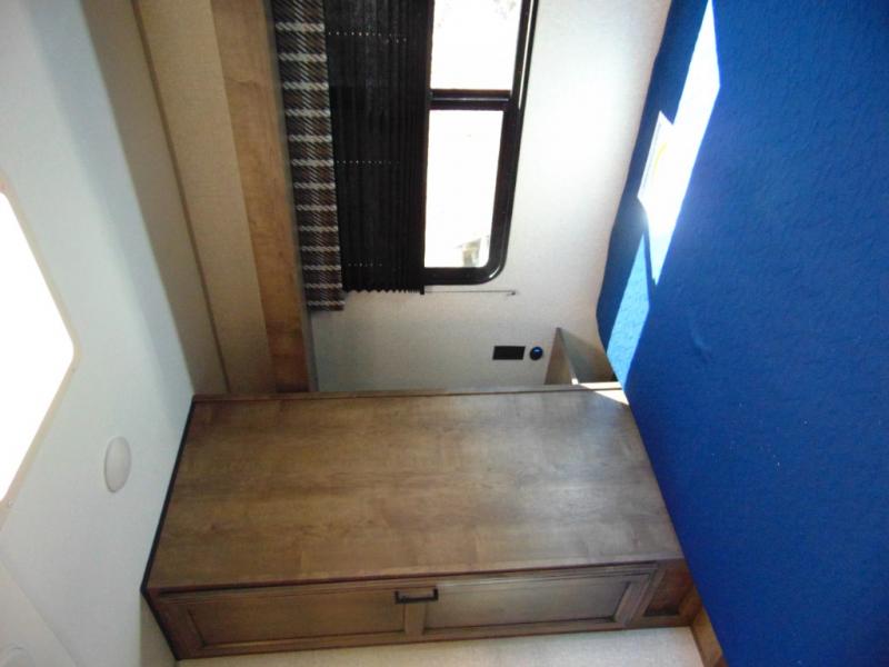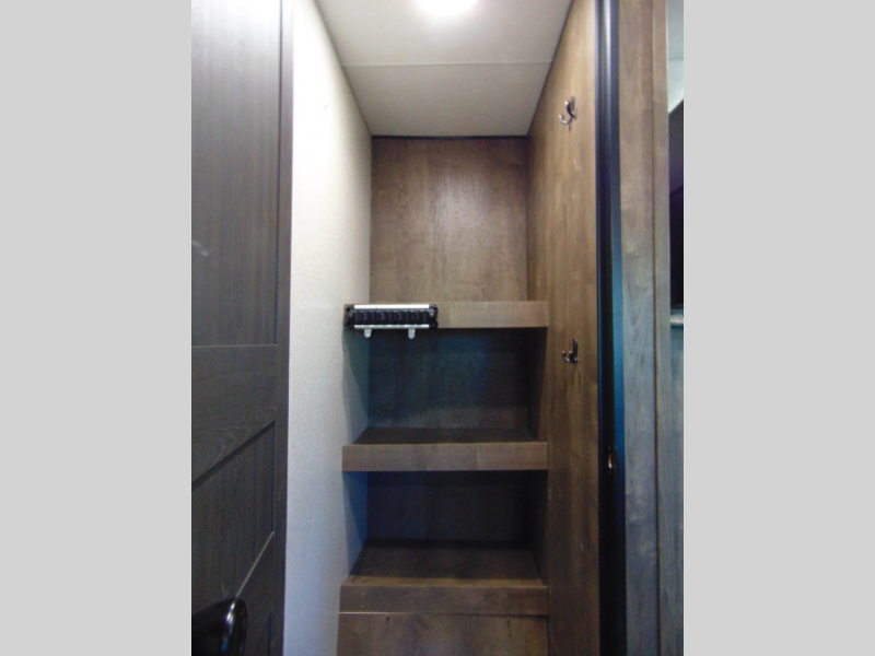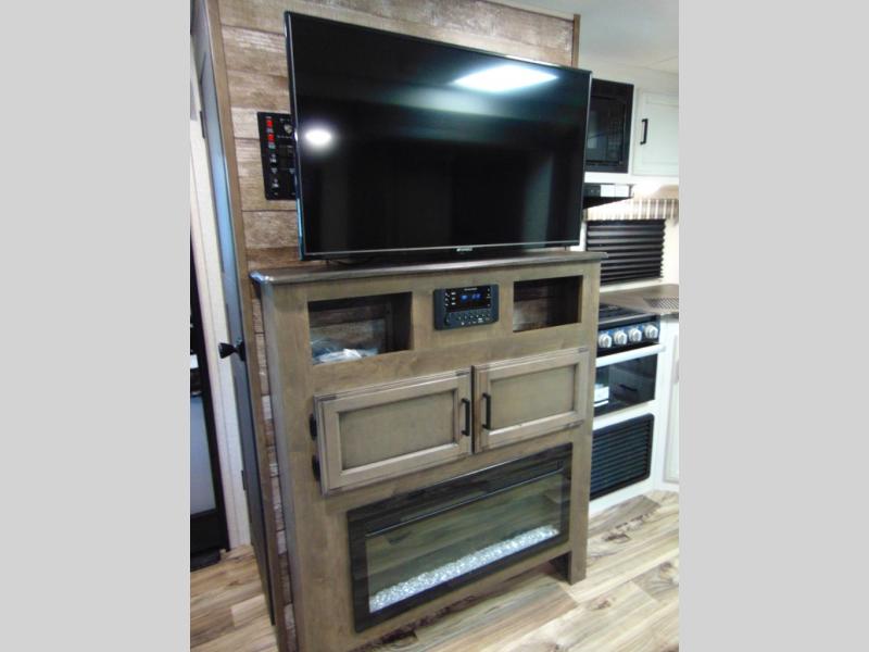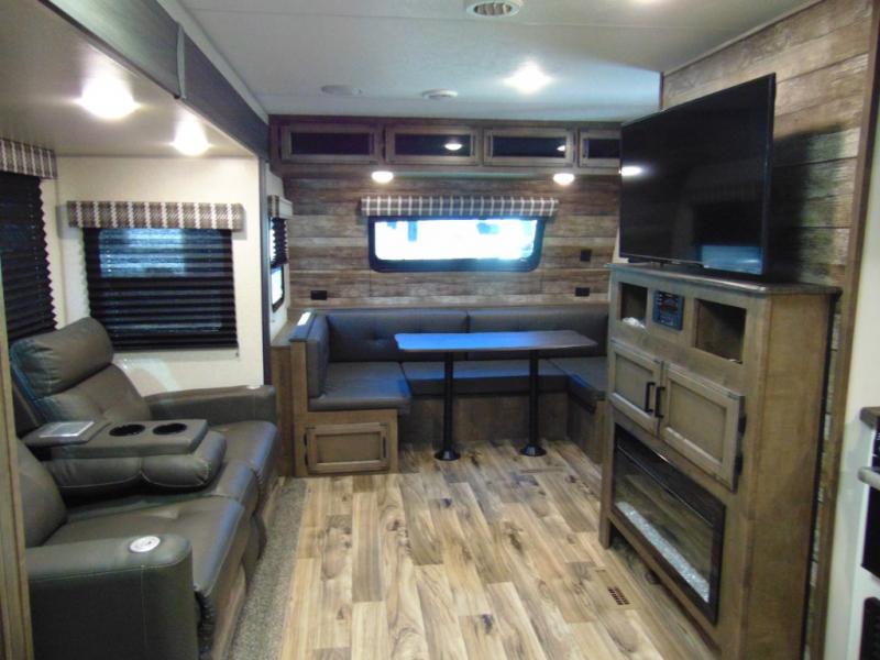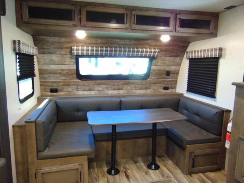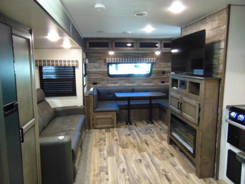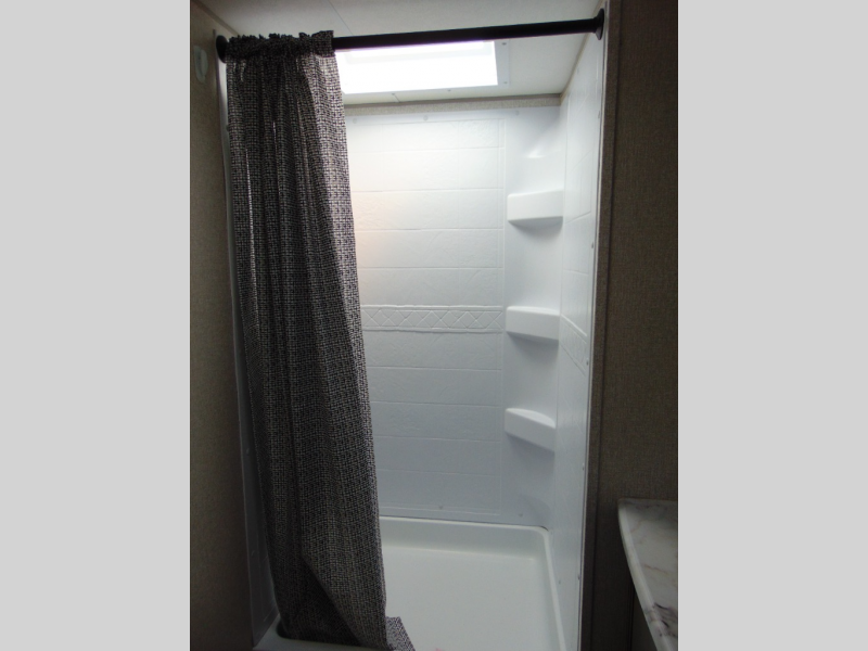 Sleep tight in this travel trailer with a sleep tight queen bed in the rear private bedroom! Freshen up each morning in the full bathroom with the 30" x 36" shower then head to the kitchen and fry some eggs up on the three burner cooktop. You can enjoy your meals at the front 88" x 42" U-shaped dinette, as well as transform it into an extra sleeping space. The 70" sofa offers a comfortable place for an afternoon nap and for watching a movie with the entertainment center. Behind the entertainment center is a walk-in pantry with coat hooks for double use. Don't leave behind any outdoor gear, simply store it in the exterior pass-through storage area!