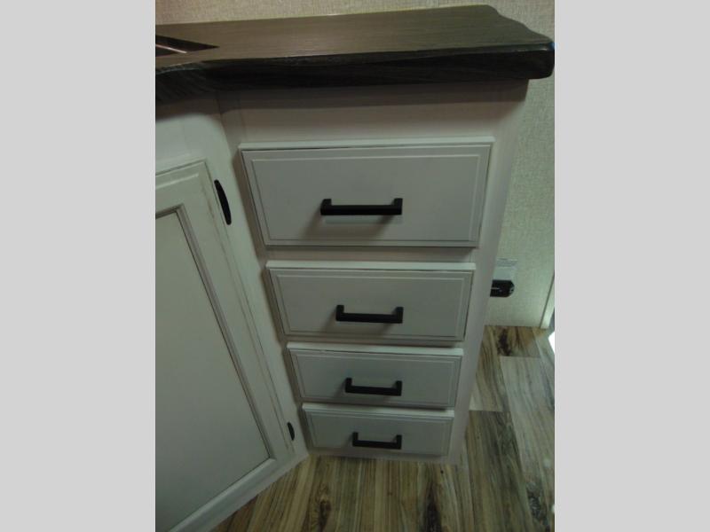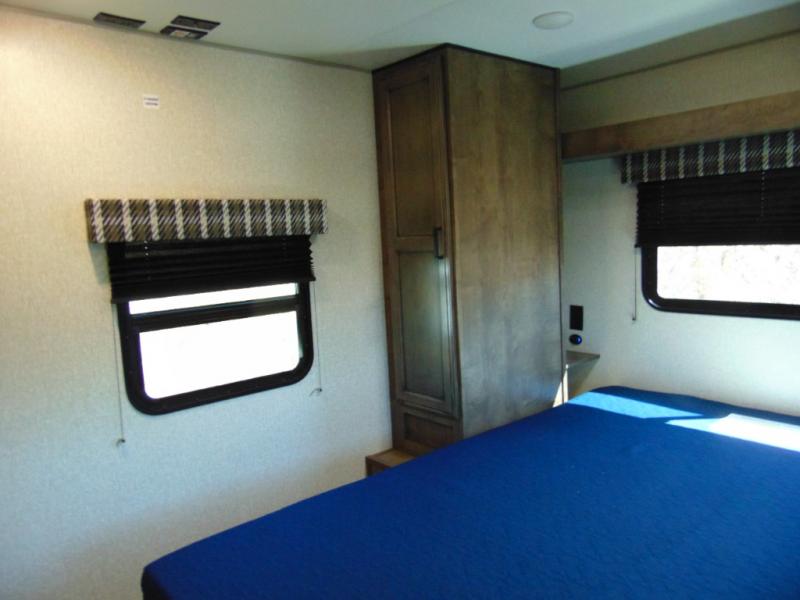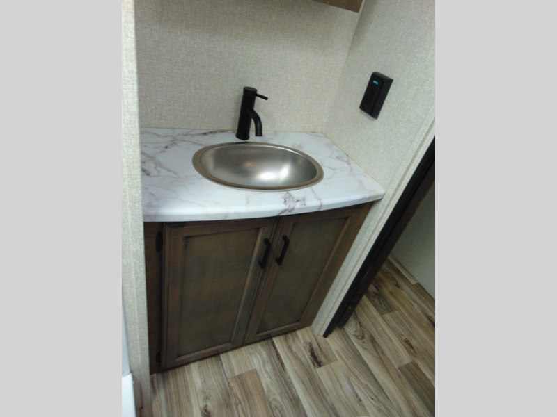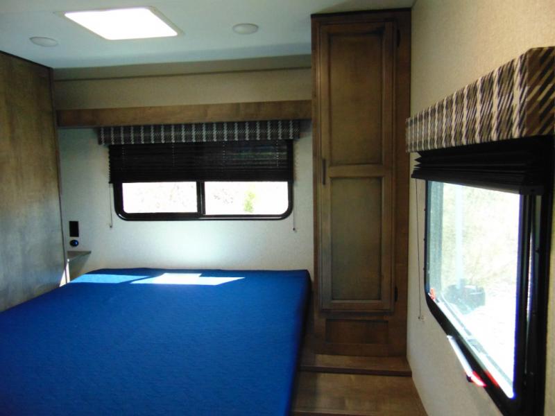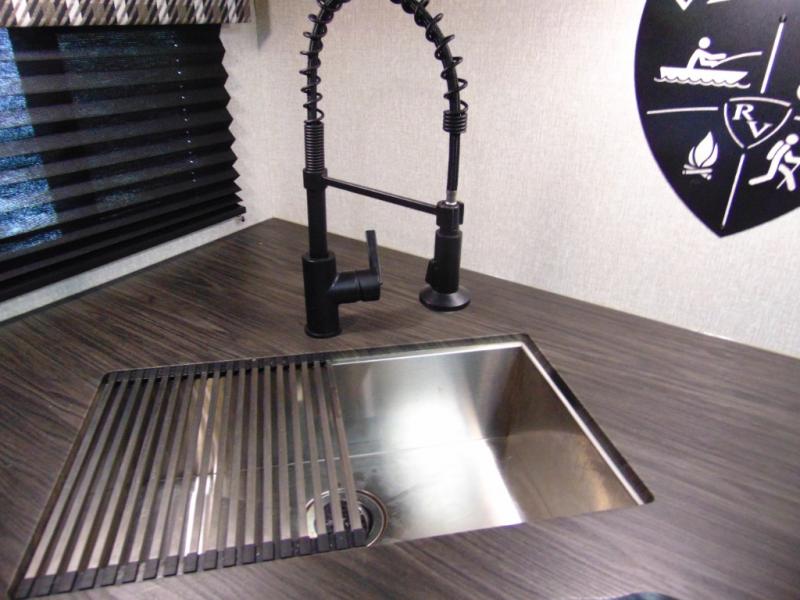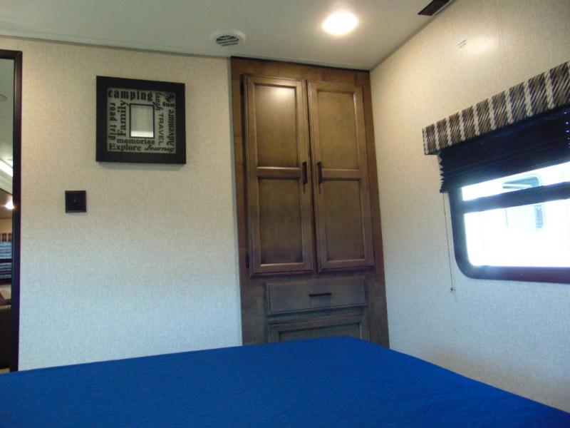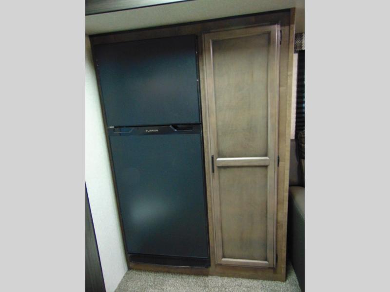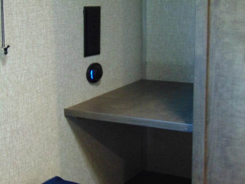 Sleep tight in this travel trailer with a sleep tight queen bed in the rear private bedroom! Freshen up each morning in the full bathroom with the 30" x 36" shower then head to the kitchen and fry some eggs up on the three burner cooktop. You can enjoy your meals at the front 88" x 42" U-shaped dinette, as well as transform it into an extra sleeping space. The 70" sofa offers a comfortable place for an afternoon nap and for watching a movie with the entertainment center. Behind the entertainment center is a walk-in pantry with coat hooks for double use. Don't leave behind any outdoor gear, simply store it in the exterior pass-through storage area!