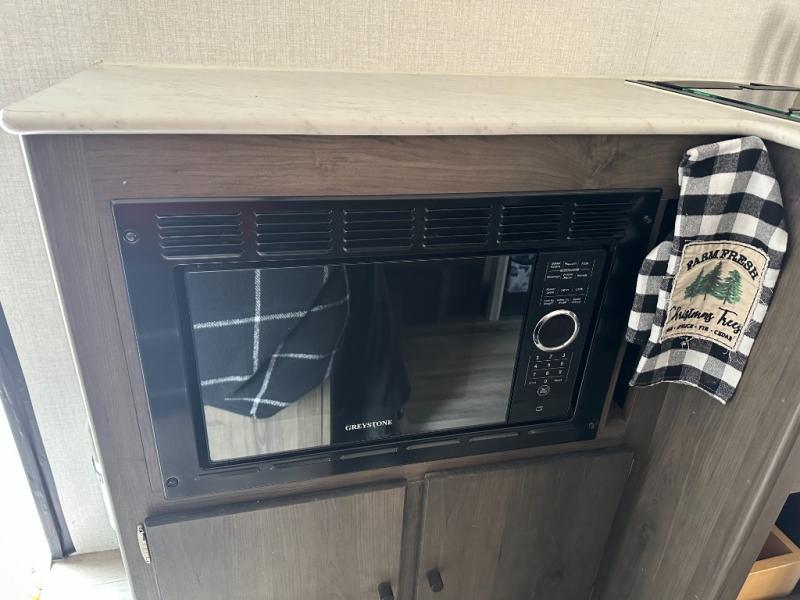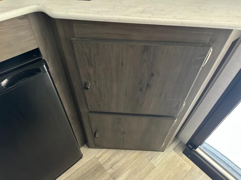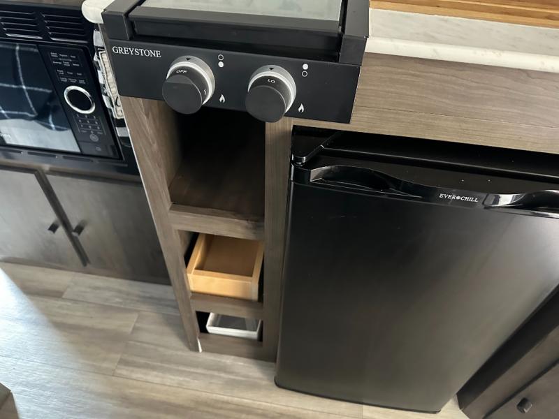This Express Series folding pop-up camper is an amazing choice for easy camping trips! It offers you a 54" x 74" bed to rest, a wardrobe to store your clothes, an outside shower to rinse off your feet, and a microwave to cook your food. The one-piece screen door can be used to prevent bugs from flying in while you allow some fresh air to breeze through, and the Bluetooth stereo will provide you with some entertainment while you're relaxing.