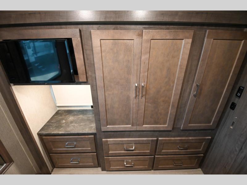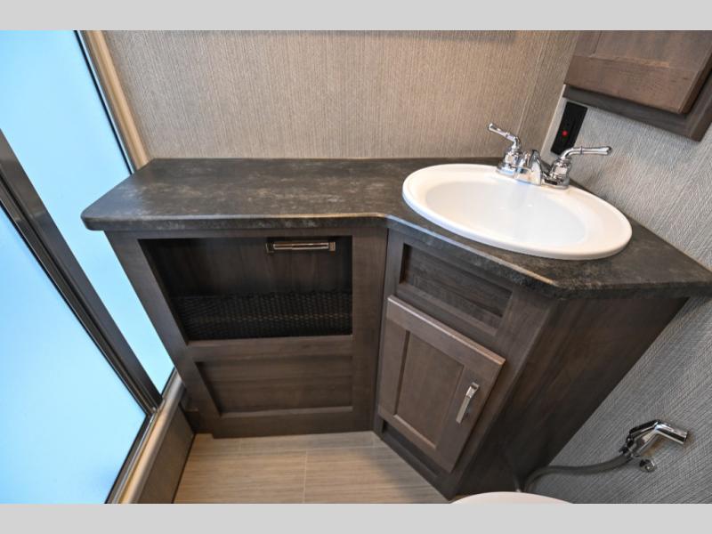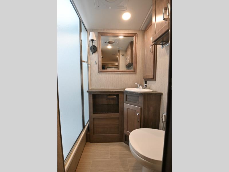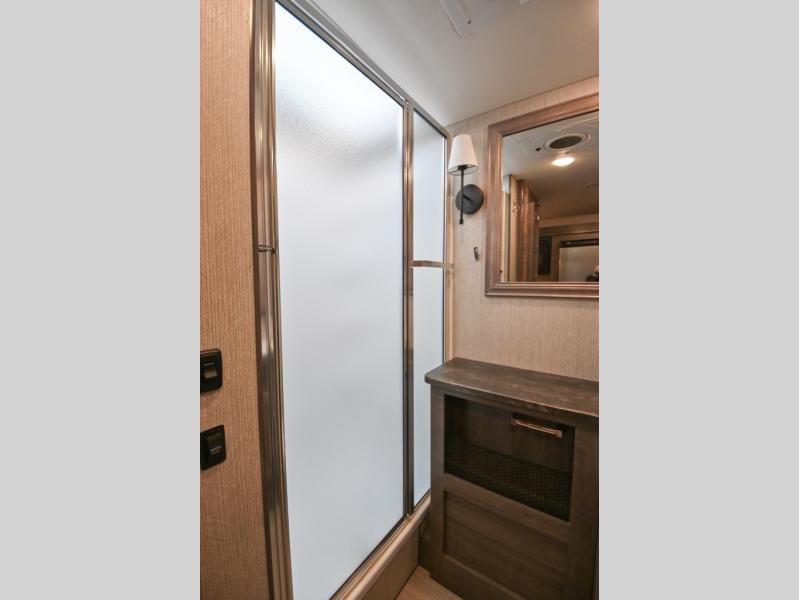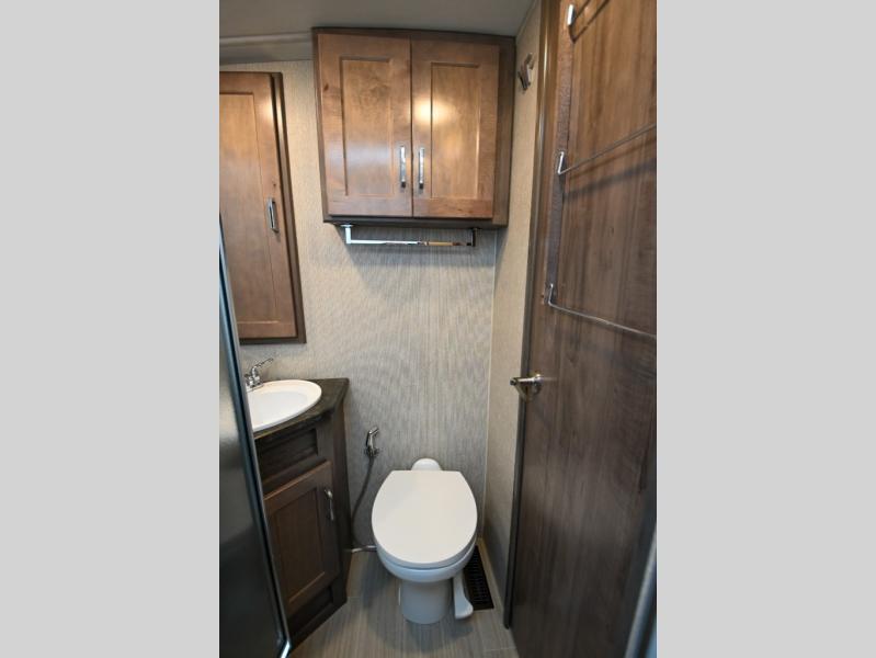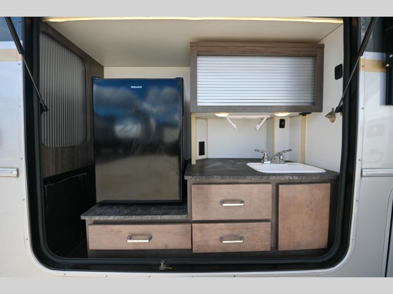 The moment you step foot inside this Adventurer Class A gas motorhome you will feel truly relaxed for a fun vacation. Once you arrive at your destination, enjoy a cup of coffee at the removable pedestal table, and the kids can play a game at the BenchMark dinette. There is also a sofa bed if the driver is needing to stretch out to rest their eyes. If the weather, is nice you may want to head outside to enjoy the power awning and the Tailgate Package that includes a Quick-Connect LP hose, a stainless steel sink, a refrigerator, and more! The full-wall slide opens up the whole coach for a more at-home feel, and the tandem sliding door leading into the bedroom will help save on space. This model can comfortably sleep five people each night, and if you're needing more sleeping space, just add the optional StudioLoft bed!