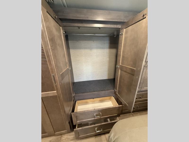 With this Forza Class A diesel motorhome, you won't even need to plan a destination because this coach is the only getaway you need! You could park it in your backyard and still feel as if you've gone away on a retreat. The interior has great accommodations with its BenchMark dinette, Rest Easy sofa, and swivel/recline cab seats, and the large slide provides extra space for you to spread out and relax. The kitchen is fully equipped with the best tools, and the flip-up countertop extension is going to be helpful for providing extra counter space when it is pulled out into place. You will find another large slide that carries over from the kitchen into the bedroom, and the bedroom even has its very own 32" HDTV so that you can watch your favorite shows while lying down on the queen-size bed. You can also choose the optional Studio Loft drop-down bed on this model if you are needing more sleeping space!