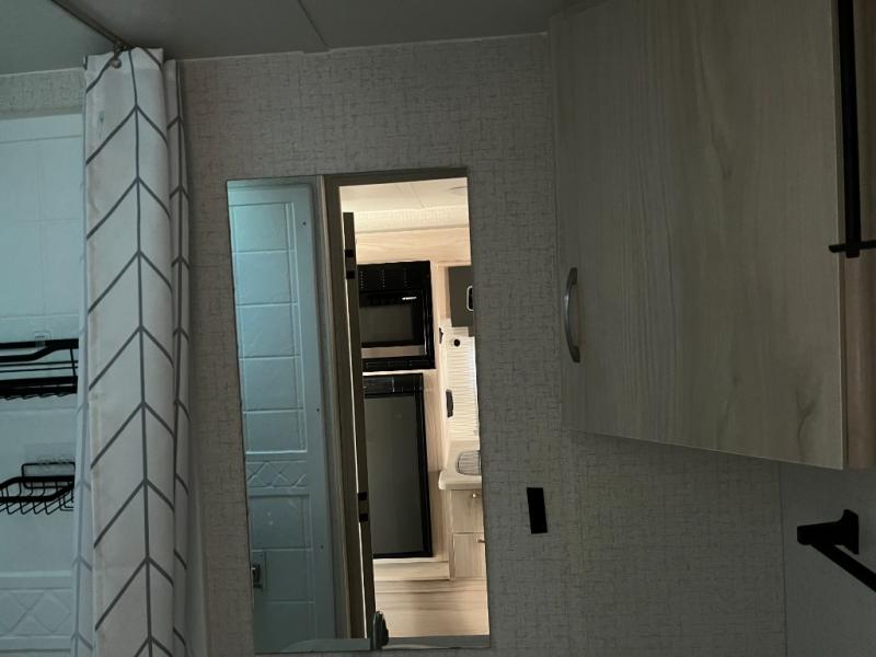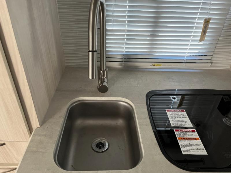 The kitchen in the 171DB is designed for convenience and efficiency, giving you the tools you need to whip up anything from quick breakfasts to campfire dinners. Featuring a cooktop, microwave, and refrigerator, this kitchen makes meal prep easy. Ample countertop space and smart storage help keep cookware, dishes, and pantry items organized and accessible so you can focus on making memories.