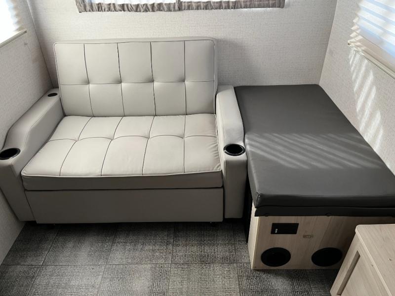 Step inside the Hike 171DB and feel instantly at ease in a bright, welcoming space. Large panoramic windows let in plenty of natural light and connect you with your surroundings while providing great views of your campsite. The open floorplan feels larger than its footprint, with versatile seating and layout that supports dining, relaxing, and socializing. The dinette converts easily to extra sleeping space for guests or kids, adding flexibility to your travel plans.