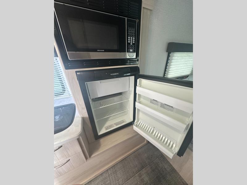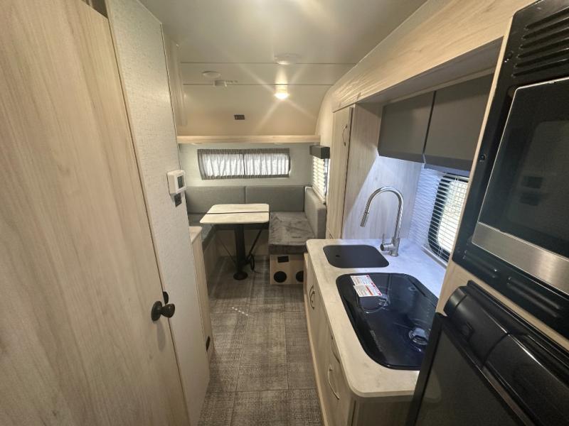 This travel trailer is perfect for two people who love going on adventures! Start your mornings feeling recharged after sleeping on the front 60" x 74" bed and head to the full bathroom to freshen up in the 24" x 32" shower. You can eat more than just cereal for breakfast thanks to the recessed two burner cooktop, the gas/electric refrigerator, and even the convection microwave. Enjoy your meals at the rear 44" x 74" U-shaped dinette while you watch the morning news with the LED TV, plus the dinette can be transformed into an extra sleeping space. There is a pantry for your favorite snacks and a wardrobe to keep your clothes out of the way!