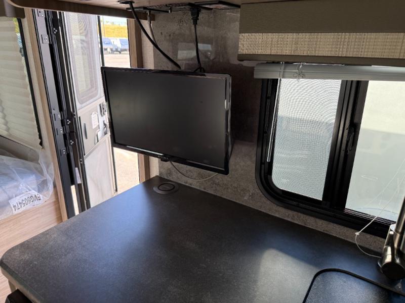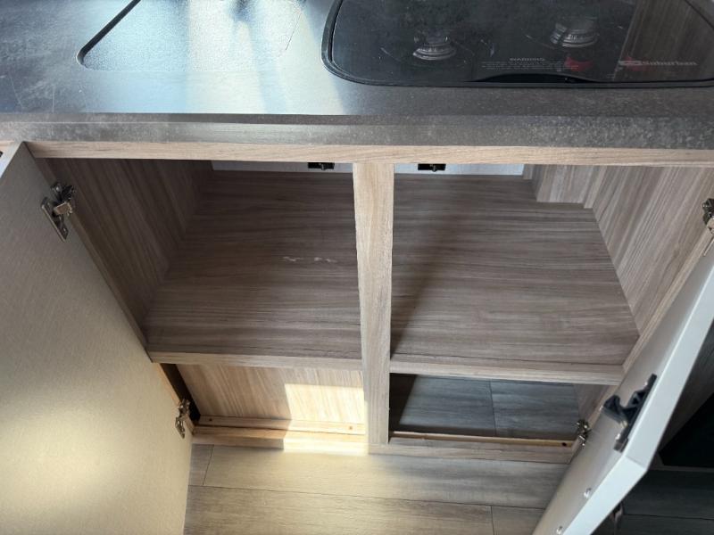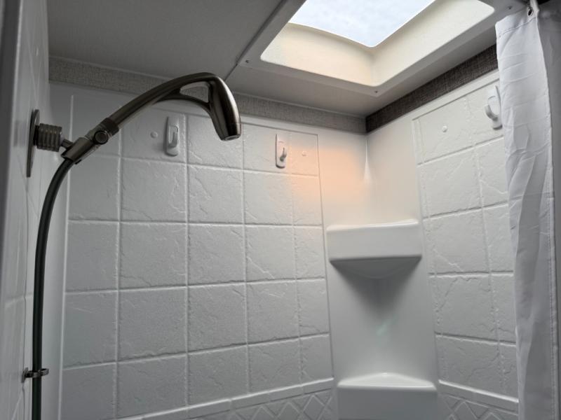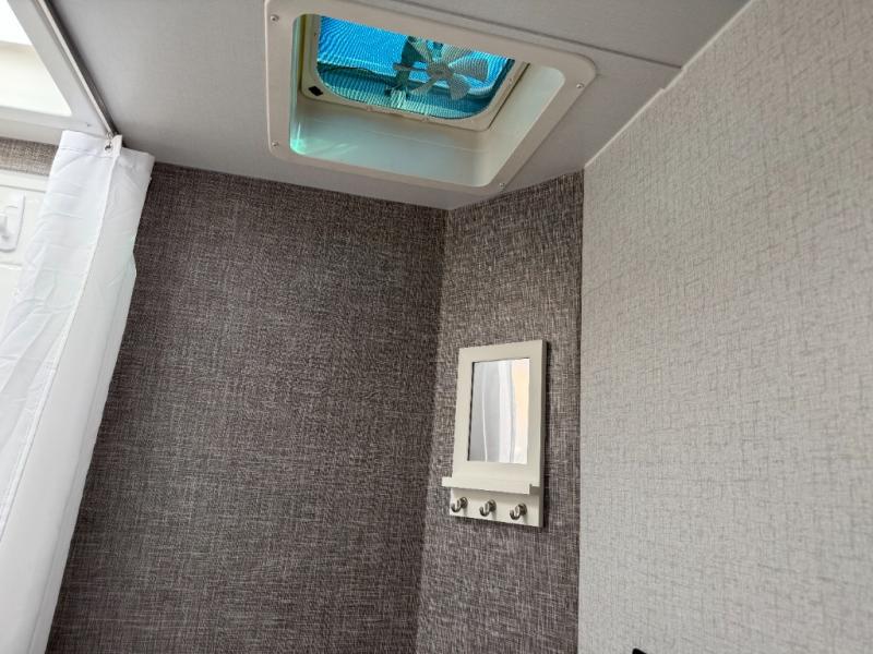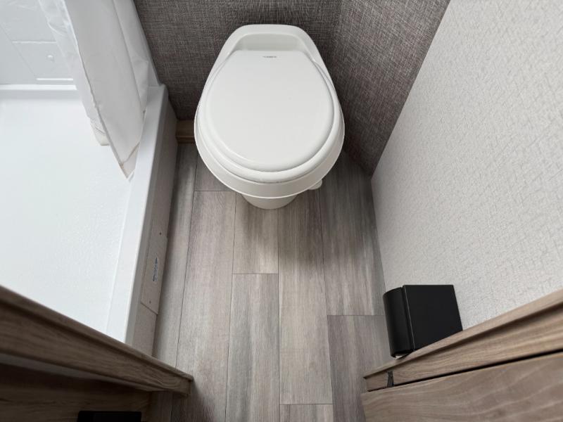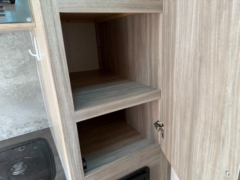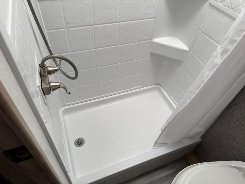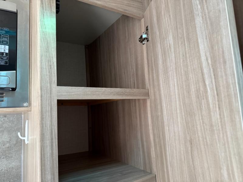 This travel trailer is ideal for a family or group of friends! With a set of bunk beds in the rear corner and a front 54" x 74" bed, everyone will enjoy a good night's rest. There is even an exterior pack-n-play door allowing you to easily store items under the bunks so they are safe inside. The rear corner bathroom features a shower and toilet so that you don't have to use the public facilities. Once you are squeaky clean, you can grab a beverage from the refrigerator and play a card game at the 32" x 74" booth dinette. And the power awning will provide an outdoor living area protected from the elements so you can relax and unwind while enjoying the outdoors.