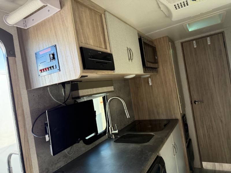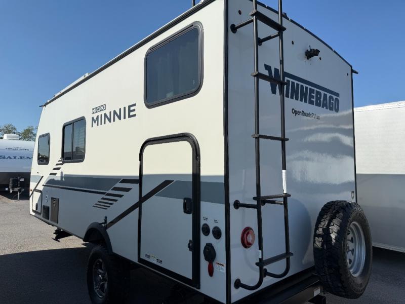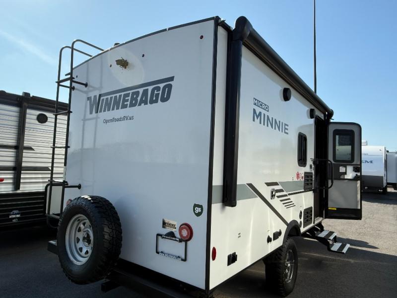 Start out on your boundless journey in one of these Winnebago Industries Towables Micro Minnie travel trailers! Towing is made simple with the 7' width to keep your Micro Minnie in your rear-view mirror. They don't lack in features either although they are compact in size. The spacious galley including a sink, refrigerator, two burner cooktop, and even a microwave oven allows you to cook without compromise. You will not only enjoy the entertainment found indoors with an LED TV, a JBL premium sound system and Aura Cube high performance mechless media center, but outdoors you will also enjoy the JBL premium speakers and a power awning with LED lighting. Each model also comes with flexible exterior storage to make packing quick and easy. What are you waiting for, come choose your model today!