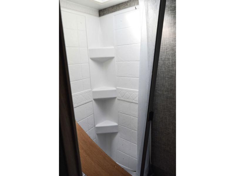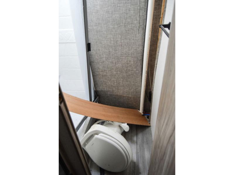 Get ready for a fun family weekend in the great outdoors with this trailer only steps away to enjoy inside comforts! The cook will love having everything to make warm meals, and can easily store leftovers in the double refrigerator, plus the flip-up counter gives them more space to prep or dry the dishes. The front 54" x 74" full bed has a divider curtain for privacy at night and the rear corner 28" x 72" bunk beds are conveniently next to the private toilet and shower room. The booth dinette slide gives you a place to dine as well as sleep one more person, plus you will love the extra floor space that it provides. You might like to choose the EZ Glide Sofa Sleeper and table option in its place, the option is yours!