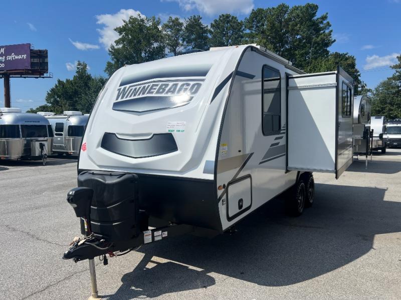 Start out on your boundless journey in one of these Winnebago Industries Towables Micro Minnie travel trailers! Towing is made simple with the 7' width to keep your Micro Minnie in your rear-view mirror. They don't lack in features either although they are compact in size. The spacious galley including a sink, refrigerator, two burner cooktop, and even a microwave oven allows you to cook without compromise. You will not only enjoy the entertainment found indoors with an LED TV, a JBL premium sound system and Aura Cube high performance mechless media center, but outdoors you will also enjoy the JBL premium speakers and a power awning with LED lighting. Each model also comes with flexible exterior storage to make packing quick and easy. What are you waiting for, come choose your model today!