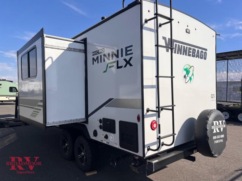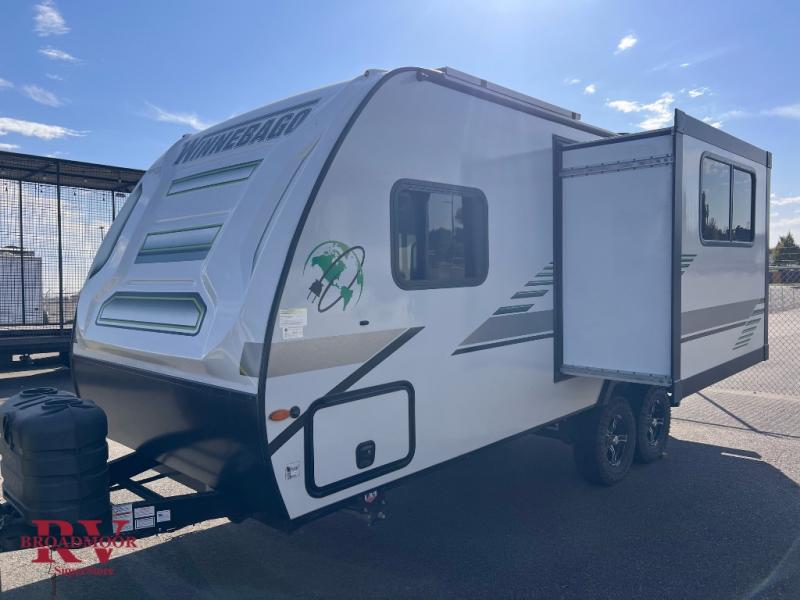 Start out on your boundless journey in one of these Winnebago Industries Towables Micro Minnie travel trailers! Towing is made simple with the 7' width to keep your Micro Minnie in your rear-view mirror. They don't lack in features either although they are compact in size. The spacious galley including a sink, refrigerator, two burner cooktop, and even a microwave oven allows you to cook without compromise. You will not only enjoy the entertainment found indoors with an LED TV, a JBL premium sound system and Aura Cube high performance mechless media center, but outdoors you will also enjoy the JBL premium speakers and a power awning with LED lighting. Each model also comes with flexible exterior storage to make packing quick and easy. What are you waiting for, come choose your model today!