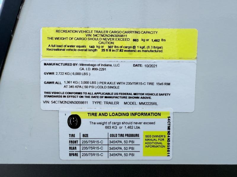 Used 2022 Winnebago Industries Towables Micro Minnie 2225RL Travel Trailer