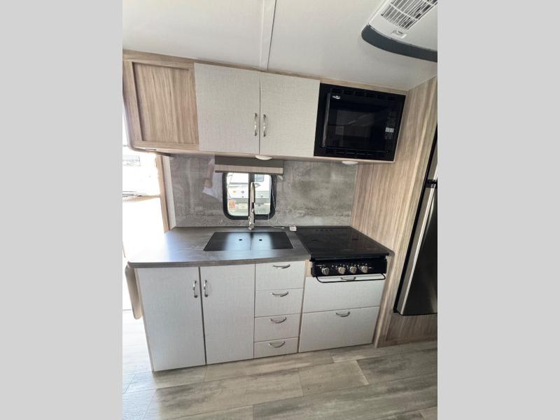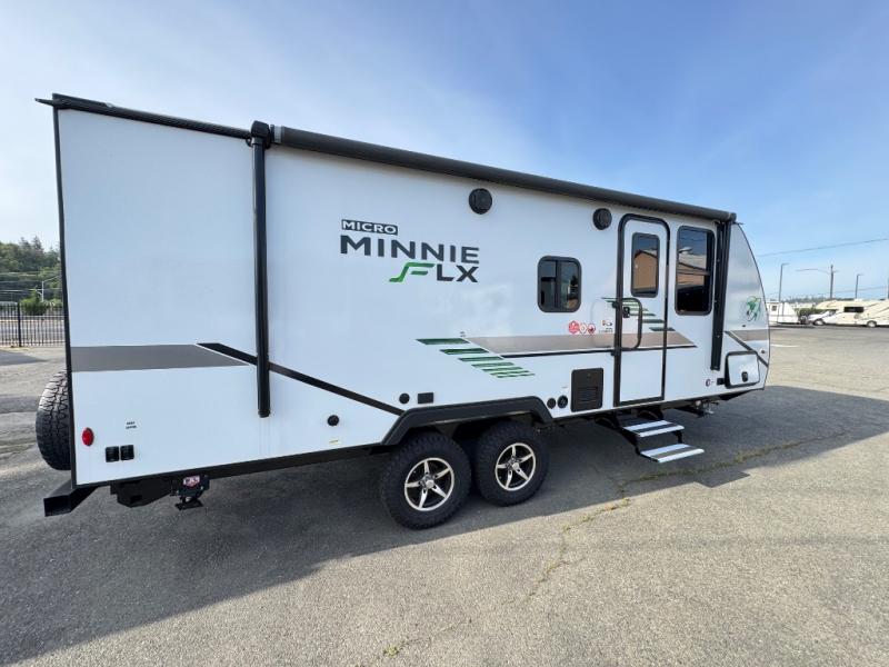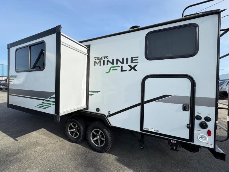 Every inch of the Winnebago Industries Towables Micro Minnie FLX travel trailer is worth checking out! These trailers are built with an NXG engineered frame, exterior fiberglass sidewalls with Azdel, Goodyear Wrangler radial tires, Torflex Dexter axles, a one-piece TPO roof membrane, a 15" off-road tire/axle lift, and power stabilizing jacks. You'll be grateful to find exterior speakers and a 2" accessory hitch receiver included. Some of the excellent technological amenities include a wireless cell phone charger, an all-in-one control panel, preparations for Wi-Fi, USB charging ports, and a JBL Aura Cube- high performance Mechless media center with parametric lighting. You'll also appreciate the fantastic electrical features, like the two 190W solar panels, the 320AH UL lithium battery, TV antenna, and 3,000W inverter.