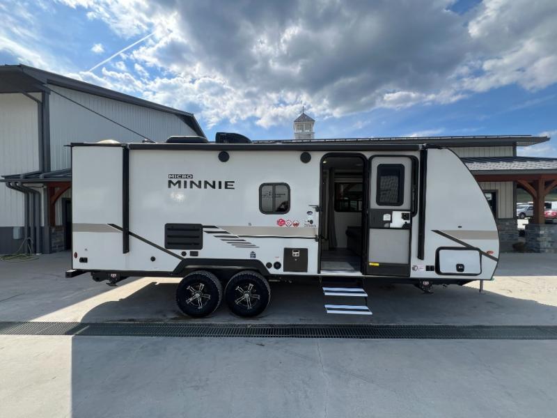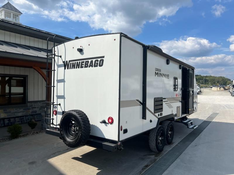 Start out on your boundless journey in one of these Winnebago Industries Towables Micro Minnie travel trailers! Towing is made simple with the 7' width to keep your Micro Minnie in your rear-view mirror. They don't lack in features either although they are compact in size. The spacious galley including a sink, refrigerator, two burner cooktop, and even a microwave oven allows you to cook without compromise. You will not only enjoy the entertainment found indoors with an LED TV, a JBL premium sound system and Aura Cube high performance mechless media center, but outdoors you will also enjoy the JBL premium speakers and a power awning with LED lighting. Each model also comes with flexible exterior storage to make packing quick and easy. What are you waiting for, come choose your model today!