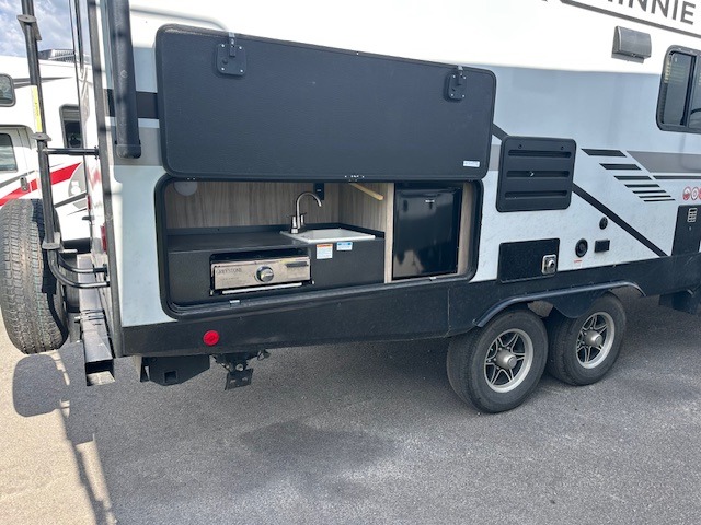 The lightweight Minnie travel trailers by Winnebago Industries Towables are constructed with an NXG engineered frame, exterior fiberglass sidewalls with Azdel, and a gel coat fiberglass front cap for strength and durability. Each model includes a 15K roof A/C (Effective 6/1/2022, updated exterior height TBD), heated and enclosed holding tanks, and radiant foil insulation to extend your camping season. The class-leading storage features 44 cu. ft. of exterior storage for all your gear, and there are power stabilizer jacks and an all-in-one control panel for easy set up. A wireless cell phone charger comes standard, along with USB ports to charge your tablet and camera, plus there is WiFi prep if you need to get some work done while you're away from home.