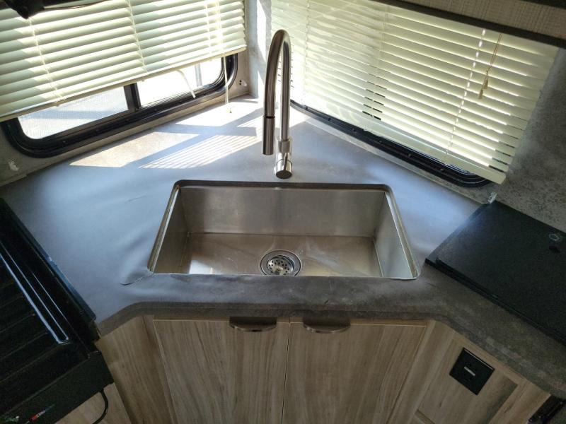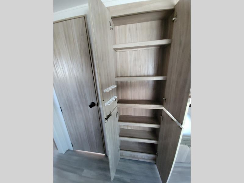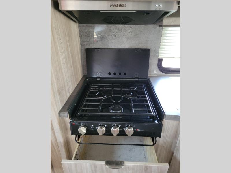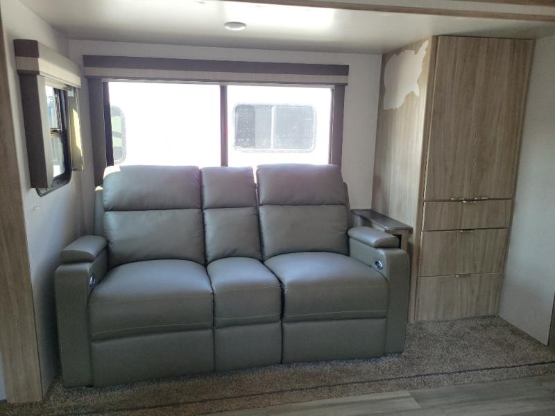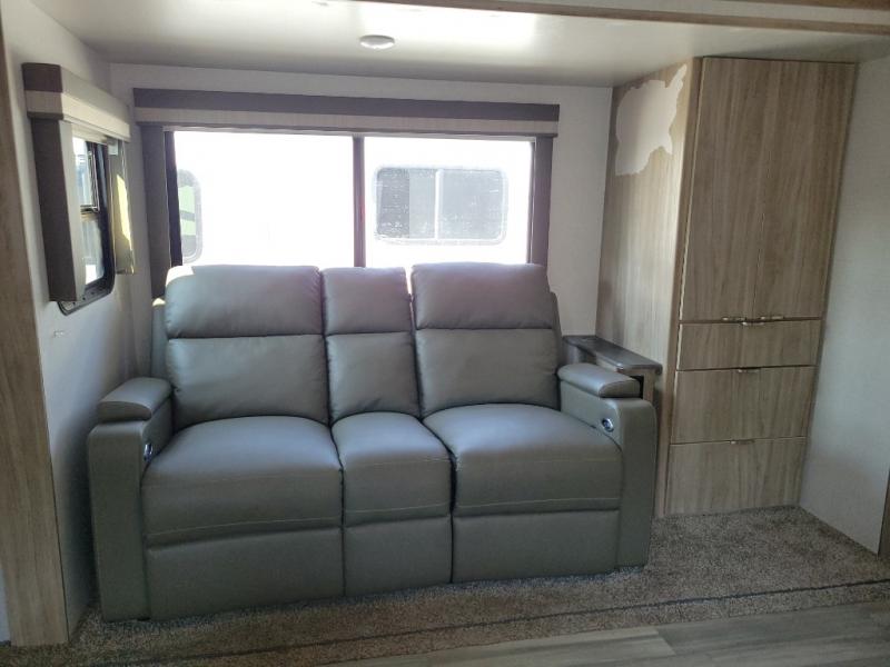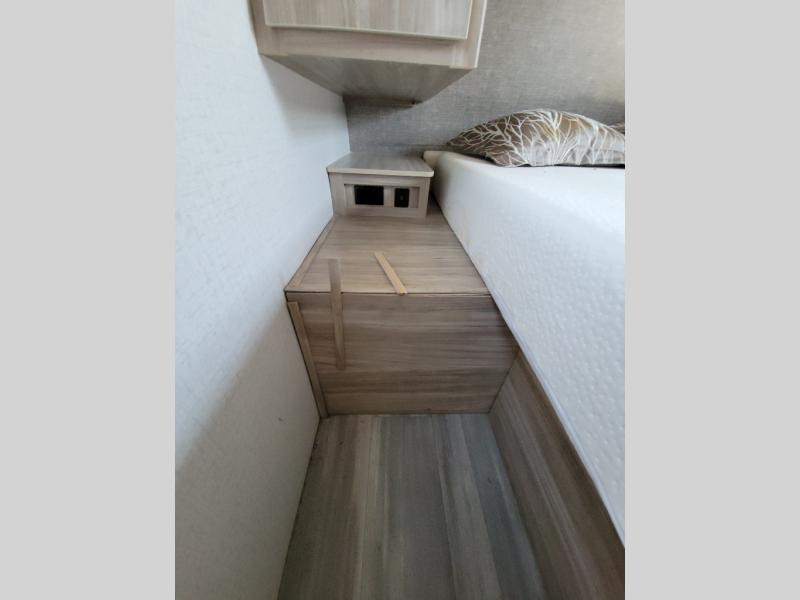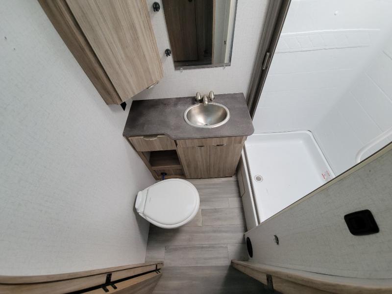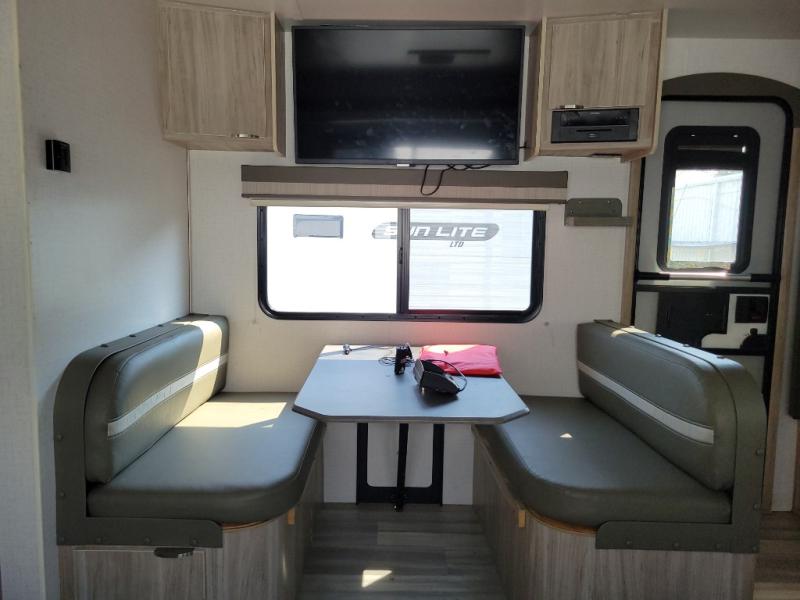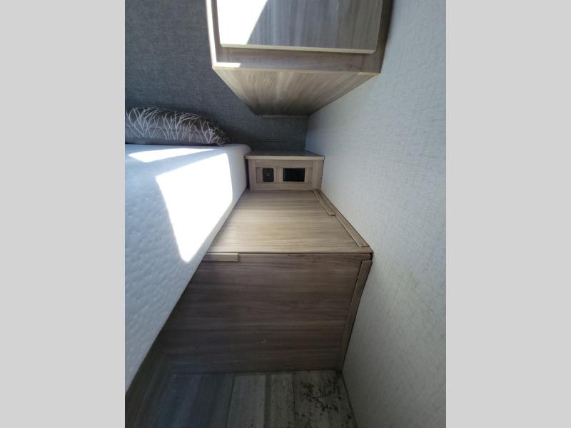 This travel trailer will feel just like home with its front private bedroom with its own exterior entry door, a full bath, plus a rear kitchen to cook up your best meals. Once lunch is made, you can dine at the booth dinette, or take your plate outdoors to sit under the 18' power awning with LED lights. The large slide out will provide more space to let the dog nap on the floor, and there is an LED TV to watch a movie on those rainy camp days. You'll also find plenty of storage space throughout this travel trailer for all your belongings, and exterior storage for camp gear!