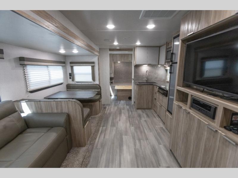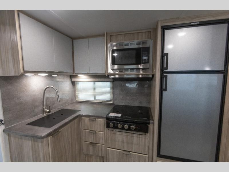 The lightweight Minnie travel trailers by Winnebago Industries Towables are constructed with an NXG engineered frame, exterior fiberglass sidewalls with Azdel, and a gel coat fiberglass front cap for strength and durability. Each model includes a 15K roof A/C (Effective 6/1/2022, updated exterior height TBD), heated and enclosed holding tanks, and radiant foil insulation to extend your camping season. The class-leading storage features 44 cu. ft. of exterior storage for all your gear, and there are power stabilizer jacks and an all-in-one control panel for easy set up. A wireless cell phone charger comes standard, along with USB ports to charge your tablet and camera, plus there is WiFi prep if you need to get some work done while you're away from home.