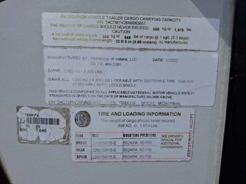 Used 2022 Winnebago Industries Towables Minnie 2801BHS Travel Trailer