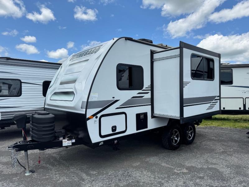 Start out on your boundless journey in one of these Winnebago Industries Towables Micro Minnie travel trailers! Towing is made simple with the 7' width to keep your Micro Minnie in your rear-view mirror. They don't lack in features either although they are compact in size. The spacious galley including a sink, refrigerator, two burner cooktop, and even a microwave oven allows you to cook without compromise. You will not only enjoy the entertainment found indoors with an LED TV, a JBL premium sound system and Aura Cube high performance mechless media center, but outdoors you will also enjoy the JBL premium speakers and a power awning with LED lighting. Each model also comes with flexible exterior storage to make packing quick and easy. What are you waiting for, come choose your model today!