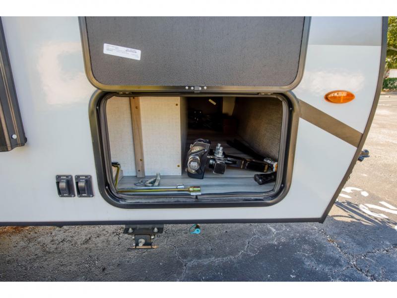 Load your kids into this travel trailer and experience a fun family getaway! The front Murphy bed offers versatile living by transforming into a 54" x 74" bed to sleep on at night and a sofa to sit on during the day. The 44" x 72" booth dinette slide is a great place to enjoy your meals at, play games as a family, and even transform into an extra sleeping space if your kids want a friend to tag along. The kids will love sleeping on the rear corner 28" x 72" bunk beds and having the rear corner bathroom right next to them. As if that wasn't enough, there is an exterior pack-n-play door, a power awning with LED lighting, and patio speakers to crank up the tunes!