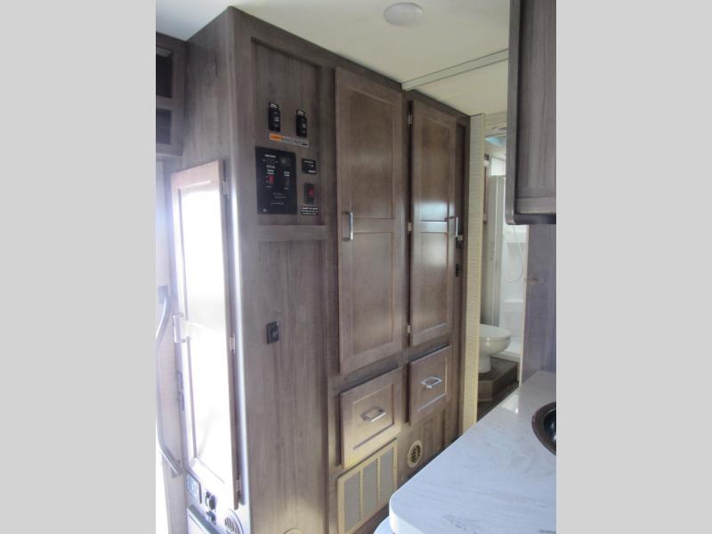 The Winnebago Minnie Winnie Class C gas motorhome is an exceptional choice for your upcoming travels! You will have a radio/rearview monitor system with integrated 8.95" multi-function touchscreen monitor and rear color camera, Bluetooth, Apple CarPlay, Android Auto and Sirius XM ready, and the cab seats have armrests, fixed lumbar support, and multi-adjustable slide/recline to keep you comfortable as you travel. There are quite a few safety features that will enhance your driving experience, like the hill start assist, adaptive cruise control, and lane departure warning. The front wraparound curtain will block out the sunlight from the windshield, and the exterior showcases a premium high-gloss fiberglass skin, a large lighted trunk storage compartment, a molded front cap, and a powered patio awning with LED lighting. The interior is also outfitted with an amplified digital HDTV antenna, systems monitor panel, and USB charger.