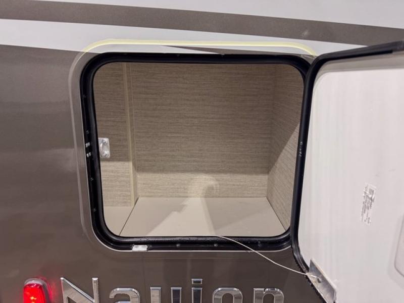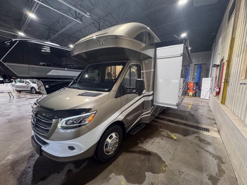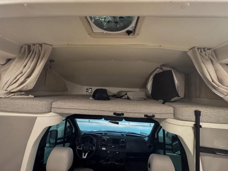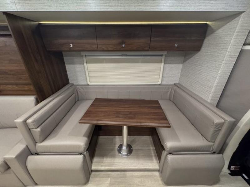 With the Winnebago Navion Class C diesel motorhome, campsite setup is made easier with a powered patio awning with LED lights and Bluetooth control that you can control with a smartphone app, a slide out that is easily moved outward with a push of a button, and your sleeping accommodations are flexible with your activities. The Mercedes-Benz Sprinter chassis, the turbo-diesel engine, the Adaptive ESP technology and the hydraulic brakes with ABS, are a few reasons you will love driving this coach anywhere, plus all the cab conveniences. The interior offers laminate countertops and vinyl flooring throughout for easy care, cabinets with accent lighting, toe kick lighting to help when your hands are full, and charging stations for your electronics. Choose a quieter, more comfortable ride with the SuperShell sleeper deck, and start making plans for years of traveling in your own Navion!