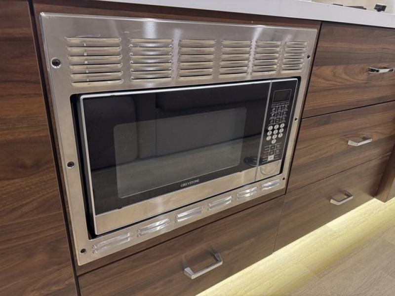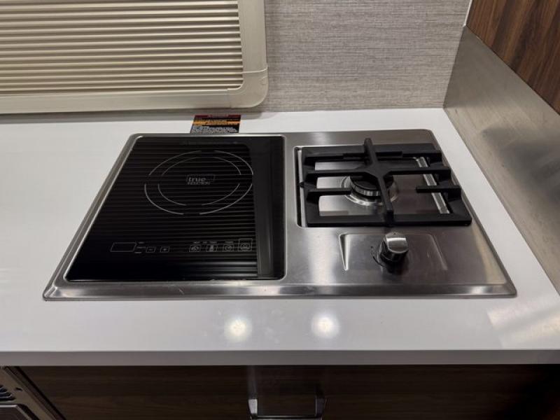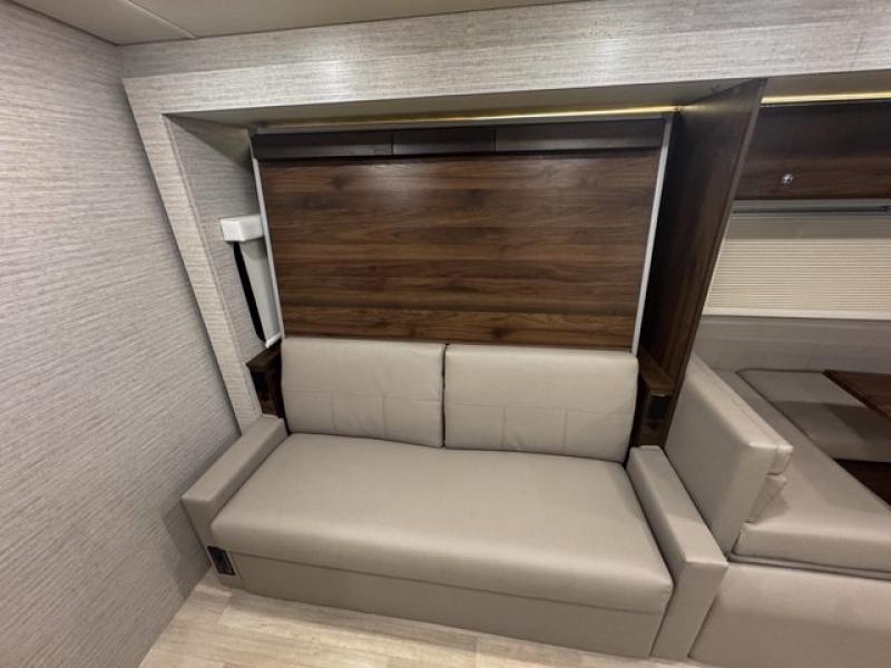 This family-friendly coach offers sleeping space for six when you utilize the Murphy Bed, the cabover bunk and the U-shaped dinette with footrests as sleeping space! Now you might have decided to add the theater seating option, the choice is yours. During the day, the sofa easily replaces the Murphy bed so you can dine at the pedestal table that you grabbed from the front area's location. The heated power control cab seats include armrests, adjustable lumbar support, headrest, recline, slide and manual swivel functions giving you ultimate comfort on the road and while at your RV spot. The cook will love having a galley kitchen with a microwave/convection oven and 12V compressor refrigerator/freezer to keep everyone fed.