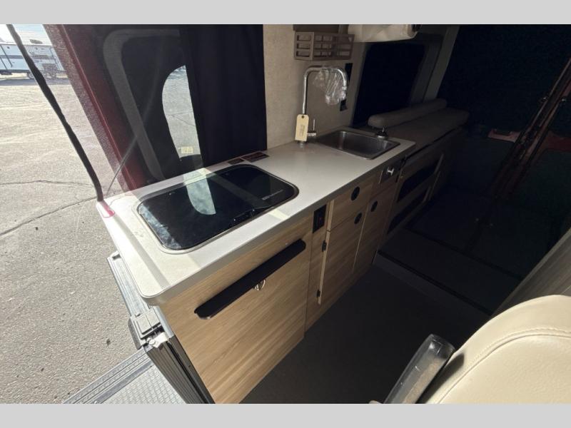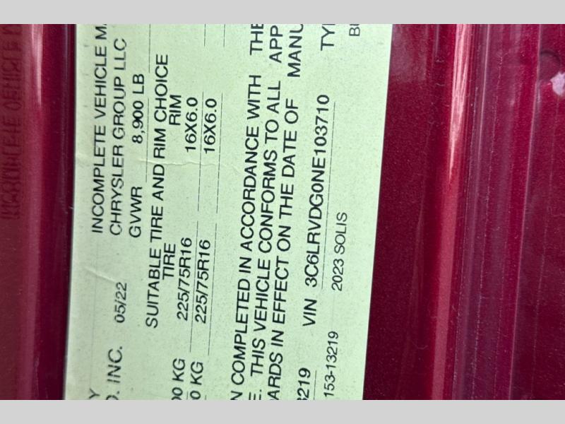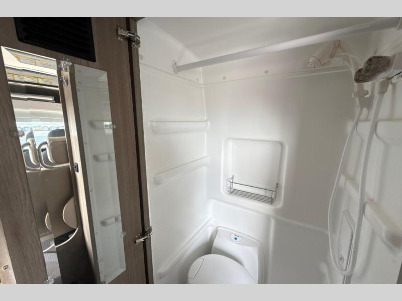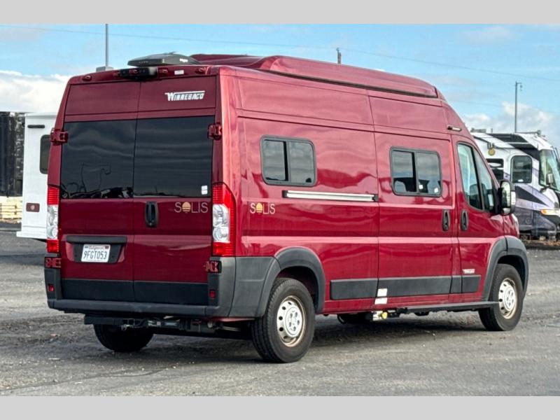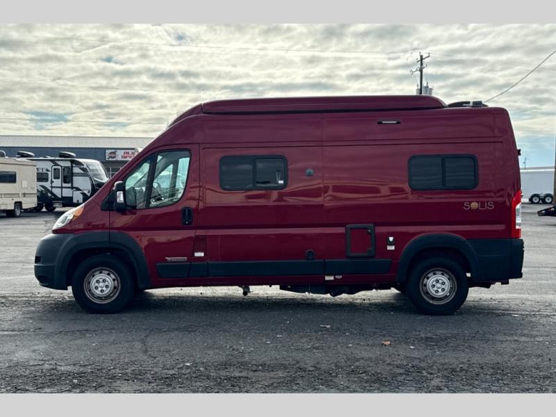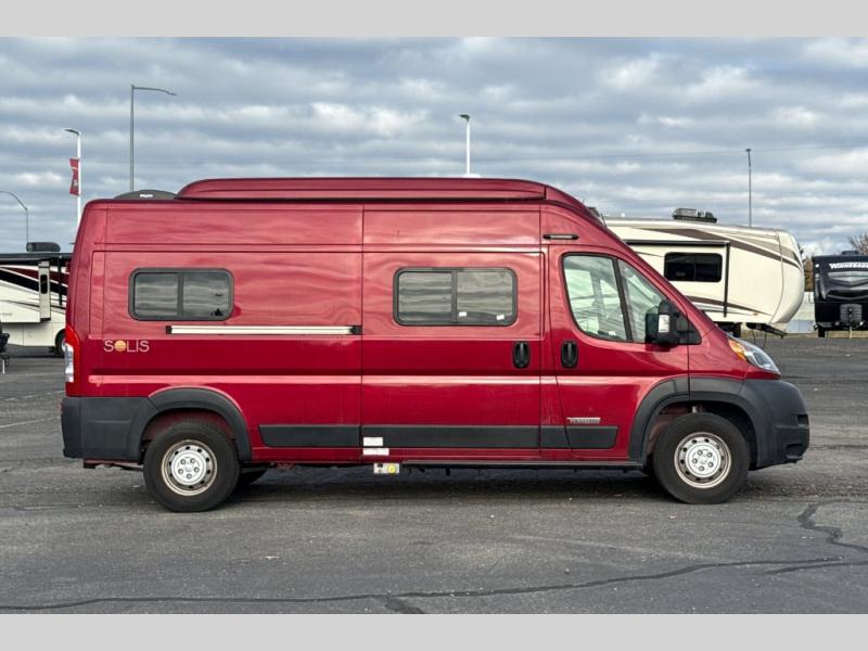 Each Solis Class B gas motorhome by Winnebago sits upon a fuel-efficient Ram ProMaster chassis with a 3.6L V6 engine to power your adventures. You will love the cab conveniences that make each trip enjoyable, like the digital review mirror, the radio/review monitor system touchscreen, and the crosswind assist to keep you steady on the road. Some of the hassle-free amenities you will appreciate are the exterior wash station, the Eco-Hot water system, and the water center control panel located inside the right rear door. Head indoors to find heavy-duty vinyl flooring throughout, a laminate countertop and a stainless steel sink in the galley, plus tinted coach windows for added privacy. The Solis also features off-grid capabilities with its two deep-cycle Group 31 batteries and 220-watt flexible surface solar panel with a controller. Adventures awaits in the Solis Class B gas motorhome!