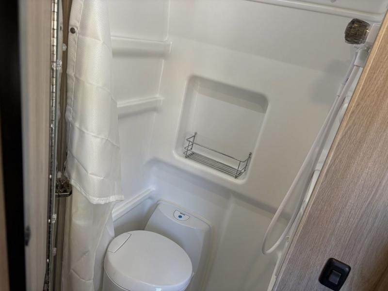 Each Solis Class B gas motorhome by Winnebago sits upon a fuel-efficient Ram ProMaster chassis with a 3.6L V6 engine to power your adventures. You will love the cab conveniences that make each trip enjoyable, like the digital review mirror, the radio/review monitor system touchscreen, and the crosswind assist to keep you steady on the road. Some of the hassle-free amenities you will appreciate are the exterior wash station, the Eco-Hot water system, and the water center control panel located inside the right rear door. Head indoors to find heavy-duty vinyl flooring throughout, a laminate countertop and a stainless steel sink in the galley, plus tinted coach windows for added privacy. The Solis also features off-grid capabilities with its two deep-cycle Group 31 batteries and 220-watt flexible surface solar panel with a controller. Adventures awaits in the Solis Class B gas motorhome!
