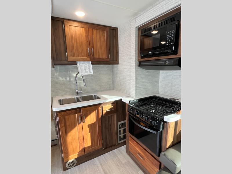 Each Spirit Class C gas motorhome by Winnebago features a powerful 7.3L V8 premium engine with either an E350 or E450 chassis, depending on the model you choose. The exterior is eye-catching with its premium high-gloss fiberglass skin, along with the molded front cap, and your choice of four exterior color options. Your journey will be made enjoyable by the multi-adjustable slide/recline cab seats, and the radio/review monitor system includes an 8.95" multi-function touchscreen with a rear color camera for easy maneuvering in and out of campgrounds. Each model includes Corian solid surface countertops, vinyl flooring throughout, black-out roller shades, plus many more comforts you won't want to camp without!