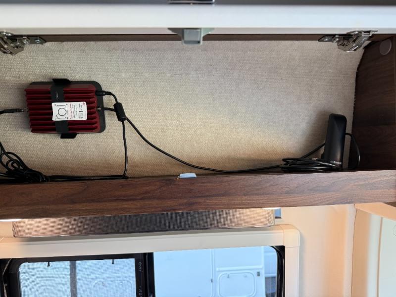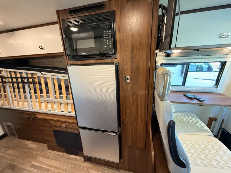 Efficiency meets comfort in the Travato Class B gas motorhome by Winnebago. The 215W solar panels and the energy management system allow you to go off-grid when the adventure calls for it, and the Coleman Mach 10 NDQ A/C will keep you comfortable during the hot summer months. If the weather is nice out, set up the power awning with LED lights or stay inside with the side and rear screen doors closed to keep the bugs out. Each model includes plenty of storage space, including RAM Tough-Track Mounts throughout, Anything Keeper drop-down storage baskets, plus below-floor storage for your outside gear. The Travato also includes a Corian countertop and a spice rack in the galley, a convenient medicine cabinet and mirror in the bath, plus LED ceiling lights throughout to keep everything bright and open! Some of the new additions to the Travato are the Bluetooth sound bar, Honeycomb composite insulated flooring, convenience door strap, and the monitor panels that have been relocated above the sliding door.