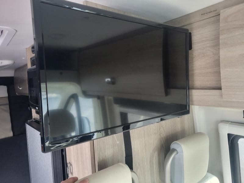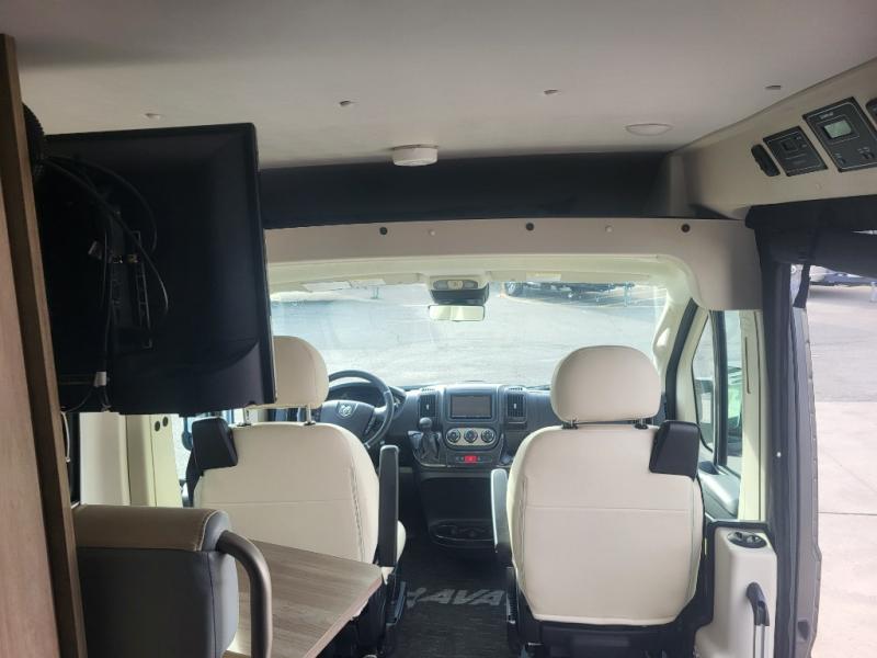 Efficiency meets comfort in the Travato Class B gas motorhome by Winnebago. The 215W solar panels and the energy management system allow you to go off-grid when the adventure calls for it, and the Coleman Mach 10 NDQ A/C will keep you comfortable during the hot summer months. If the weather is nice out, set up the power awning with LED lights or stay inside with the side and rear screen doors closed to keep the bugs out. Each model includes plenty of storage space, including RAM Tough-Track Mounts throughout, Anything Keeper drop-down storage baskets, plus below-floor storage for your outside gear. The Travato also includes a Corian countertop and a spice rack in the galley, a convenient medicine cabinet and mirror in the bath, plus LED ceiling lights throughout to keep everything bright and open! Some of the new additions to the Travato are the Bluetooth sound bar, Honeycomb composite insulated flooring, convenience door strap, and the monitor panels that have been relocated above the sliding door.