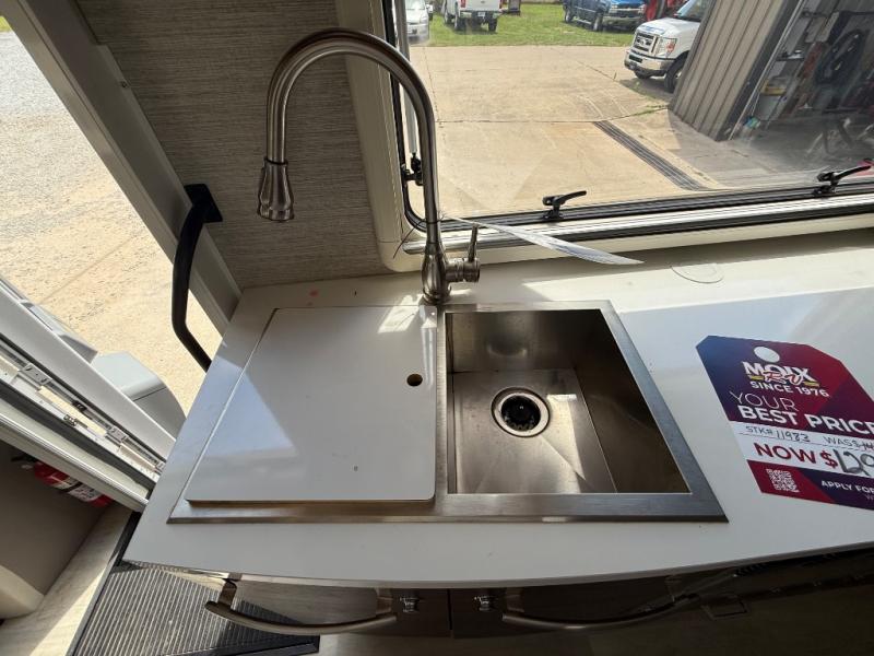 With each View Class C diesel motorhome by Winnebago, you can extend your trips off grid with the industry-leading holding tanks, the two 100W solar panels, the two deep-cycle Group 31 RV batteries, the 2,000W inverter, plus the 3,600W Cummins Onan MicroQuiet LP generator. The insulated sleeper deck is built with premium thermal and acoustic insulation allowing the SuperShell sleeper deck to be more comfortable and relaxing during any season. The View is built on a Mercedes-Benz Sprinter chassis with advanced safety features giving you peace of mind, and the MBUX touchscreen infotainment system has intelligent voice control, navigation, a Wi-Fi hotspot, and more! The interior offers luxury space and simple solutions for storage, plus it also has vinyl flooring and laminate countertops for easy clean-up.