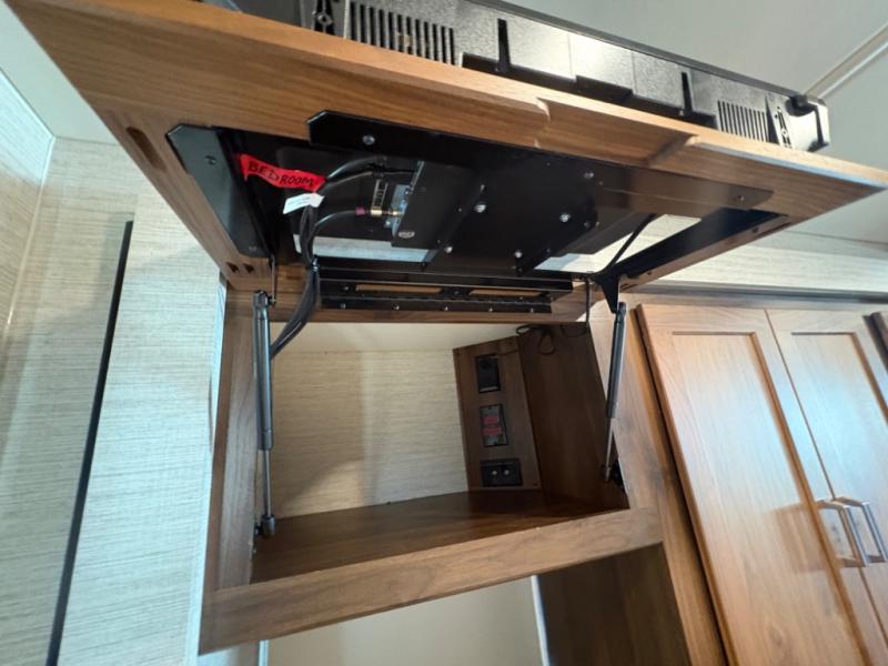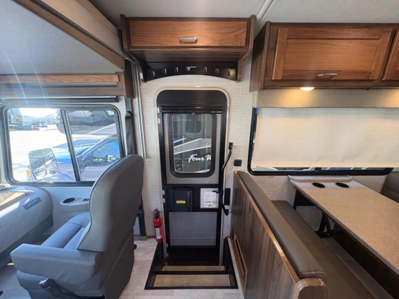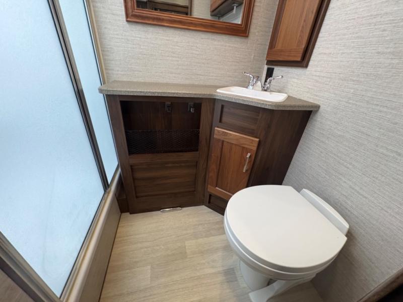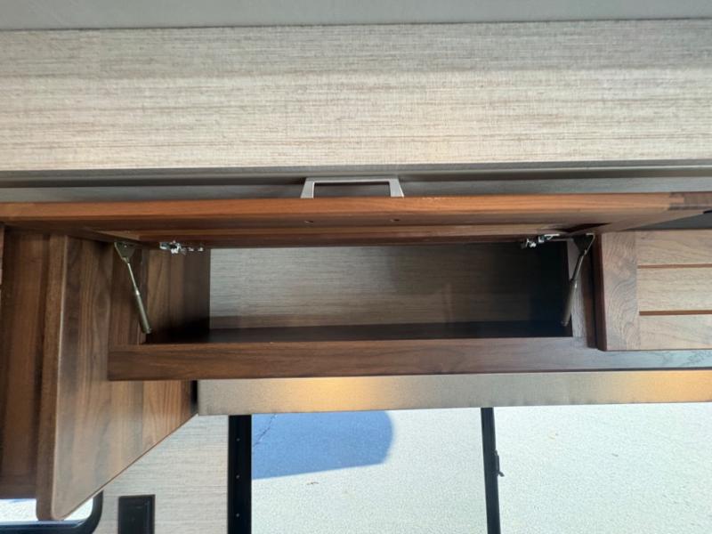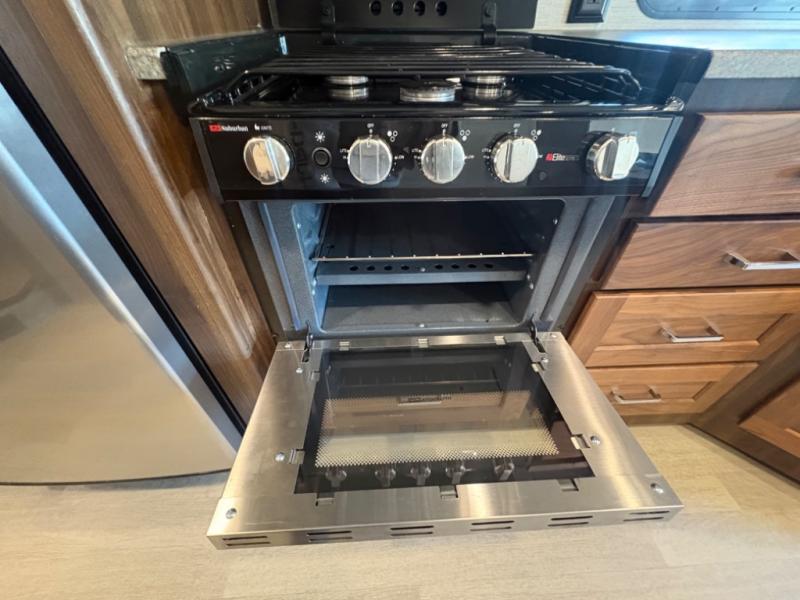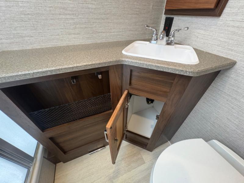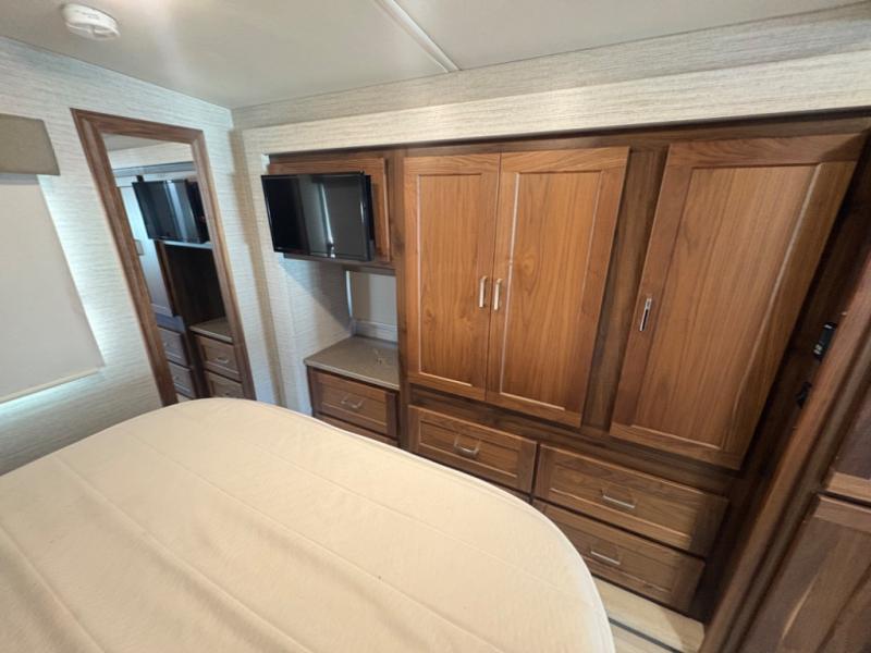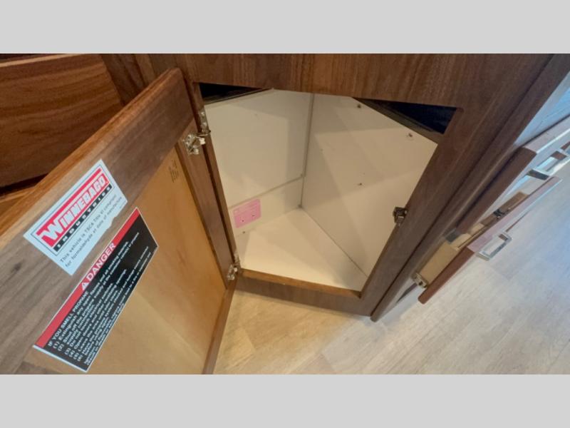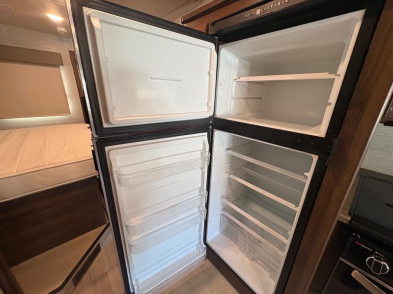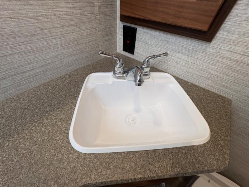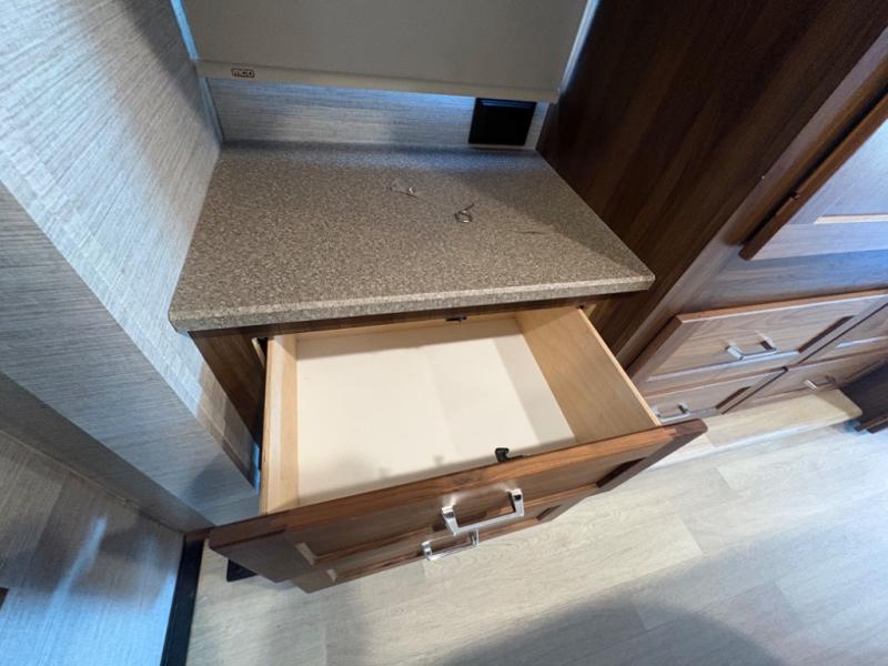 This motorhome will be your home away from home! It features a rear private bedroom with a 60" x 75" queen bed across from a wardrobe and a storage area that is also prepped to add an optional TV. Start and end your days feeling squeaky clean after showering in the 26" x 38" shower, and keep your bellies full with the three burner recessed range and 10 cu. ft. refrigerator, plus there are two pantries to store everyone's favorite snacks. The 42" x 66" dinette with hi-lo table comes with storage to keep your games close, and the 40" x 66" sofa bed can be switched out for the optional theater seating to relax in true comfort while you watch your favorite movies. You can also add an optional StudioLoft powered 48" x 80" bed above the swivel cab seats!