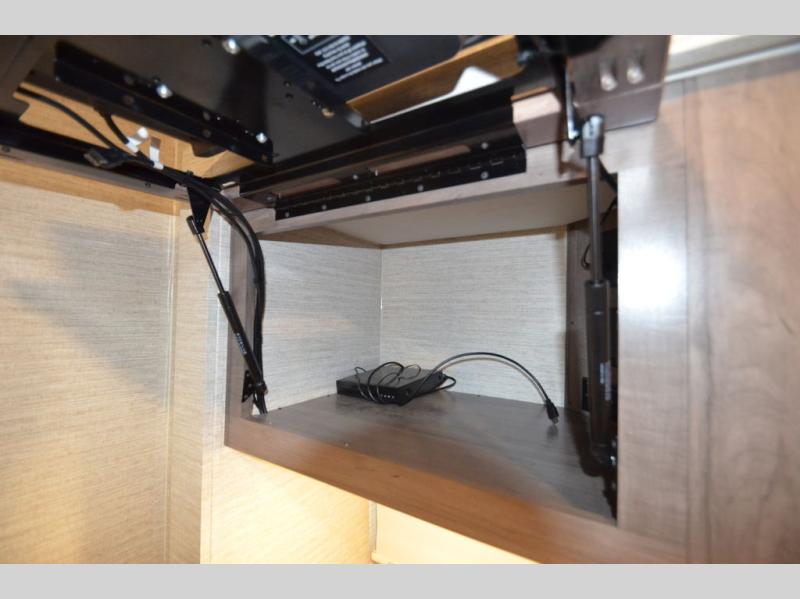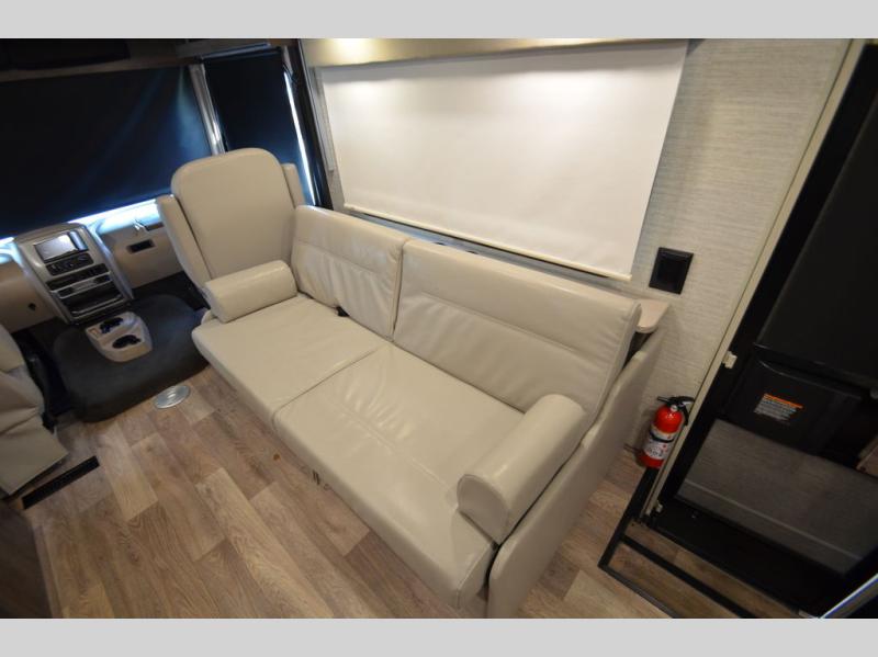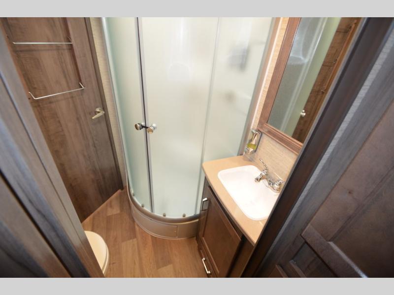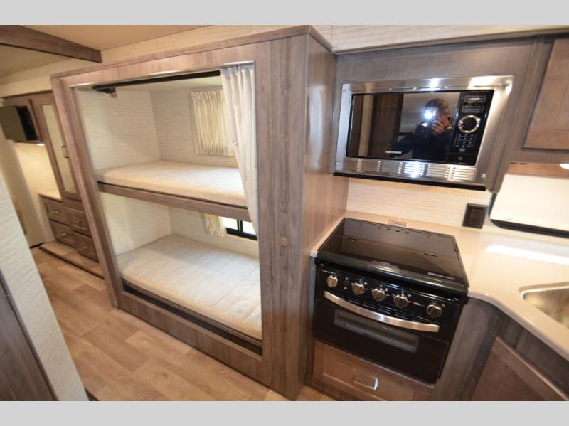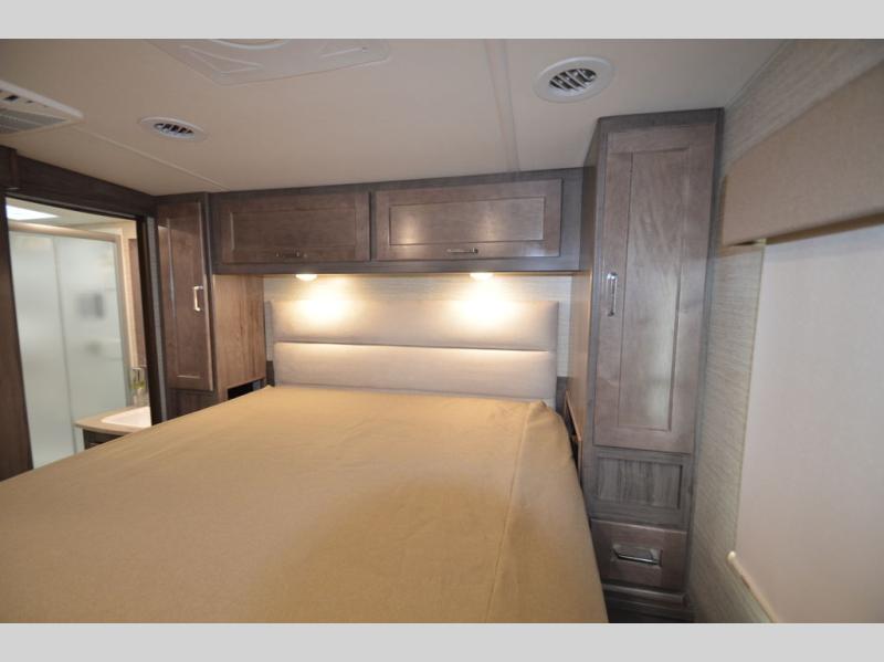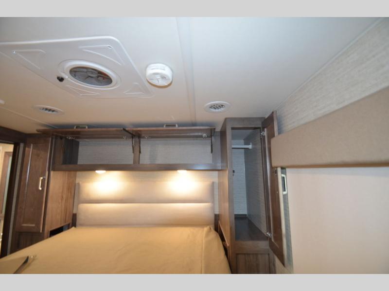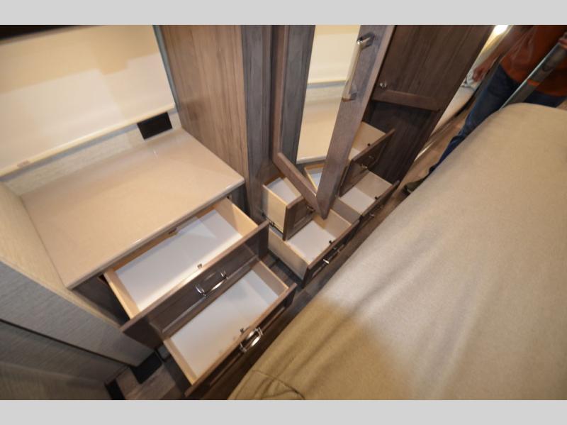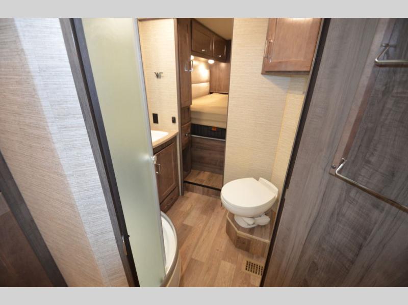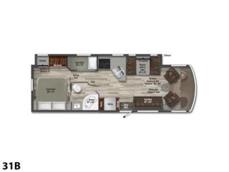 Once you reach your destination with this motorhome, you can start enjoying all of the comforts it provides! From the rear private bedroom with a 60" x 75" bed across from storage and a wardrobe, plus an area prepped to add an optional TV for entertainment in bed. The kiddos will love the 30" x 73" bunk beds and you can even add an optional StudioLoft powered 48" x 80" bed above the swivel cab seats with removable pedestal table. The 40" x 66" sofa bed and 42" x 73" booth dinette with hi-lo table can also transform into extra sleeping spaces when not in use. Your bellies will stay full with the three burner cooktop and your hair will stay clean with the 34" x 34" radius shower in the full bathroom!