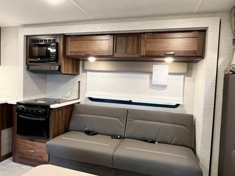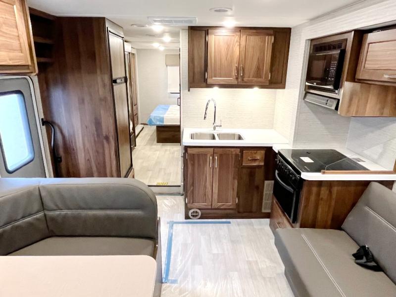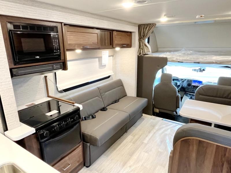 Choose your adventure with one of these Winnebago Minnie Winnie Class C gas motorhomes! The new 7.3L V8 premium engine and Ford E350 or E450 chassis makes light work of long hills. Their superior craftsmanship that was designed and built for you is shown through the Smart Driver Assist technology that includes adaptive cruise control, lane departure warning, forward collision warning, and more. With flexible seating/sleeping options and a full galley with Corian solid surface countertops, everyone will stay well rested and fed. You can store all of your traveling necessities between the overhead cabinets throughout the inside and the exterior lighted large trunk storage compartment for your outdoor gear. Come find the model perfect for you today!