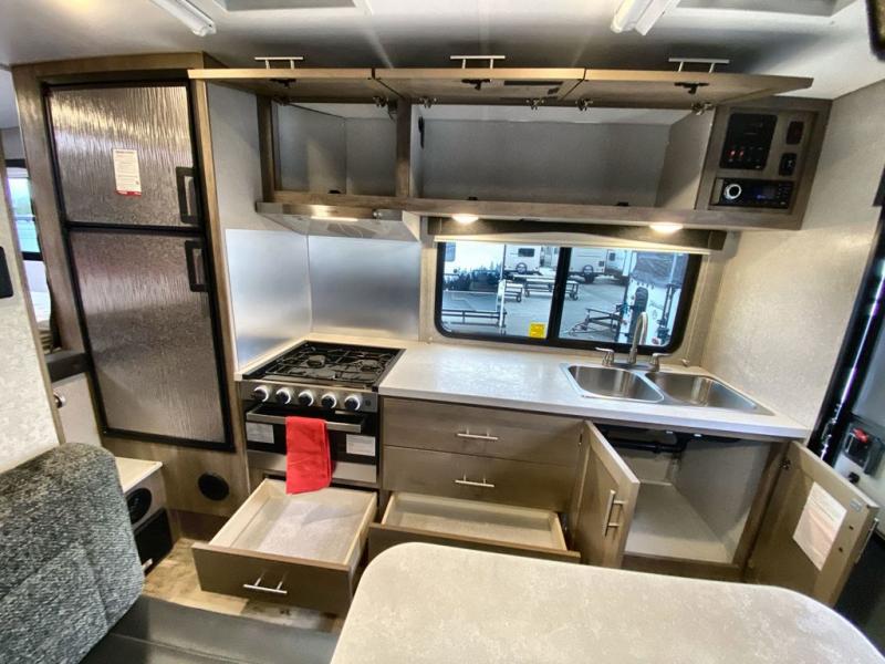 This truck camper incorporates the largest wet bath in the industry and the largest counter space without a slide! It can fit 6.5' and larger short bed trucks and all 8' long bed trucks. The front double density foam queen bed offers a comfortable place to lay your head at night and has a mirrored sliding door wardrobe for your clothes and nightstands to set a glass of water. You can even transform the Dream Dinette into an extra sleeping space when you aren't enjoying a delicious meal that was prepared with the sealed three burner cooktop with residential grate. This model also includes the mandatory Elite Option Package that comes with a 26" friction hinge door with a dead bolt and screen, a 4-season insulation package, LED lights both inside and out, plus more!