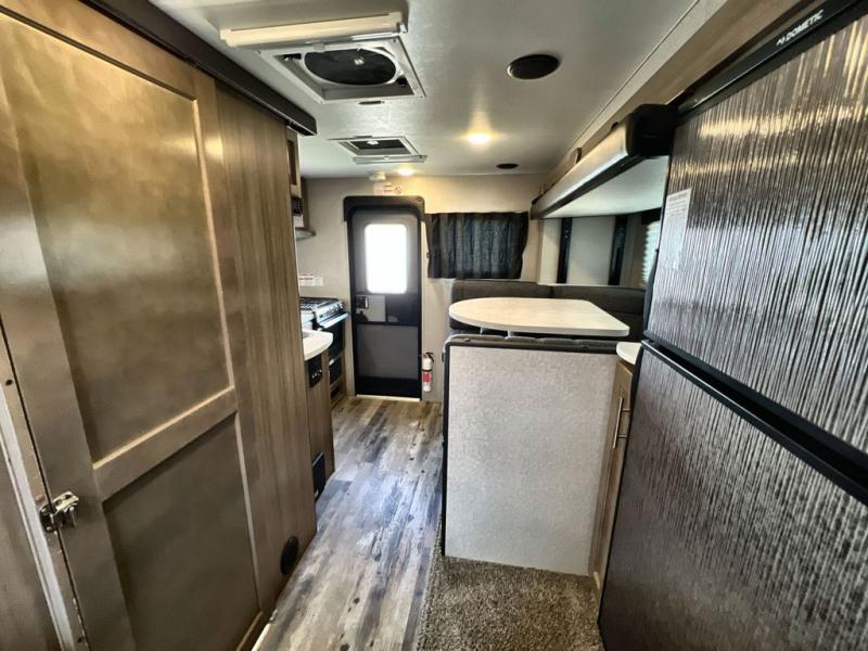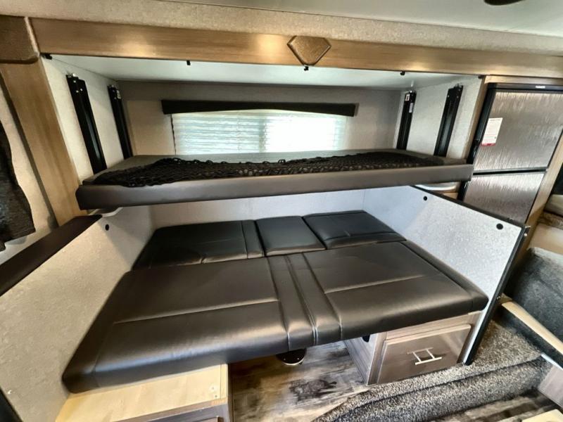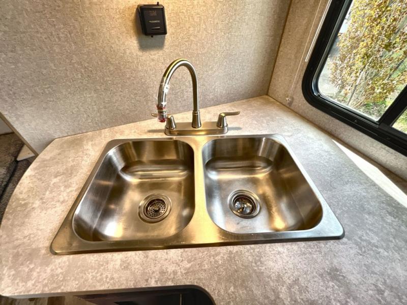If you have a long bed truck then you need this truck camper for your next getaway! The super face-to-face booth dinette and Dometic 7 cu. ft. refrigerator within a slide out opens up the living space and you can even add an optional power bunk for extra sleeping space. There is also a front king bed to lay your head on at night with a nightstand and a sliding wardrobe door for your clothes. Prepare delicious home cooked meals for everyone with the sealed three burner cooktop with residential grate and easily clean up with the stainless steel double bowl sink. Everyone will stay squeaky clean with the separate one-piece fiberglass shower in the dry bath and there is a dual layer skylight for added natural lighting as you get ready. The mandatory Elite Option Package on this model comes with a 26" friction hinge entrance door with a dead bolt and screen, flush mount LED lights, Lamilux 4000 two-toned high gloss gel-coat fiberglass exterior, and more!