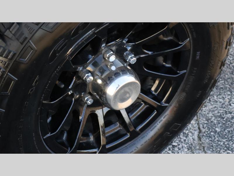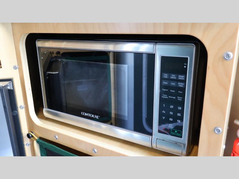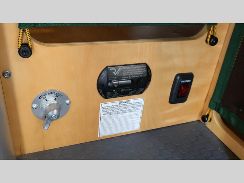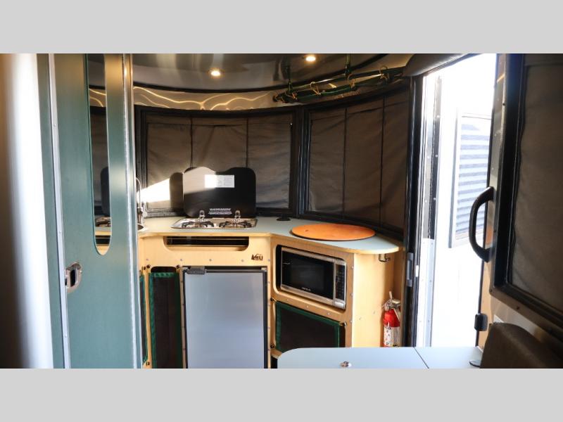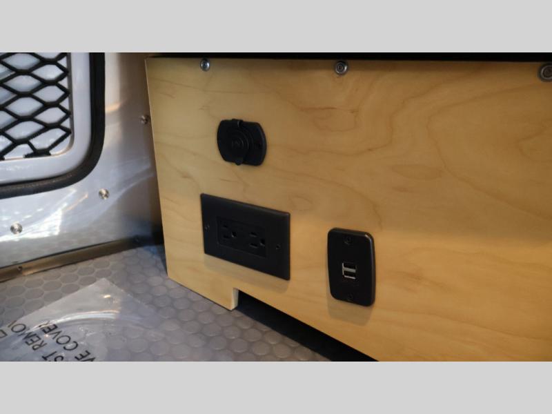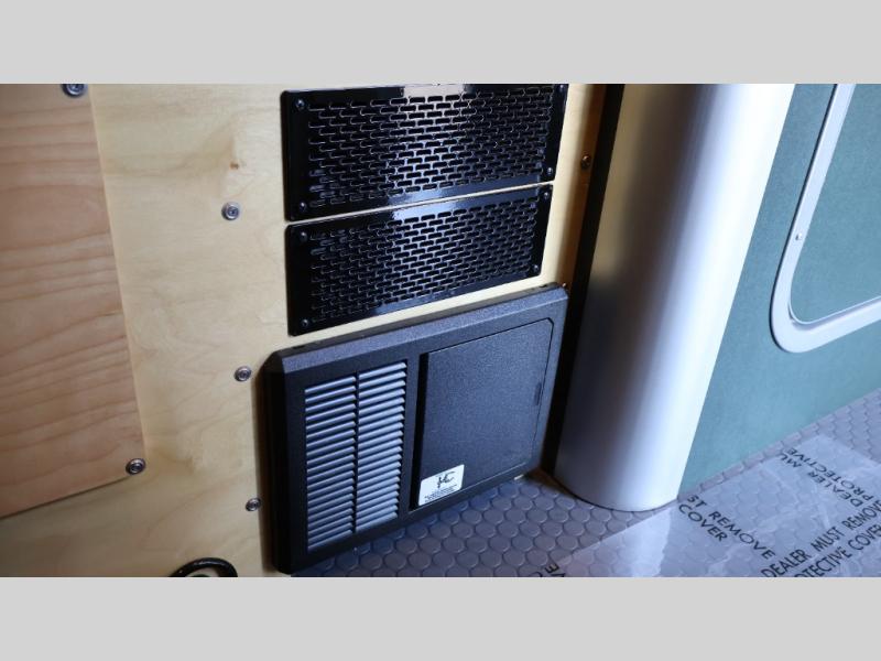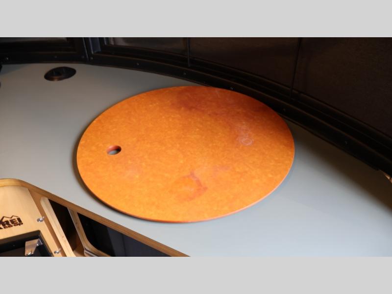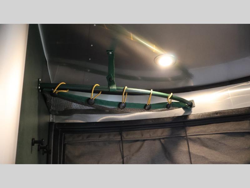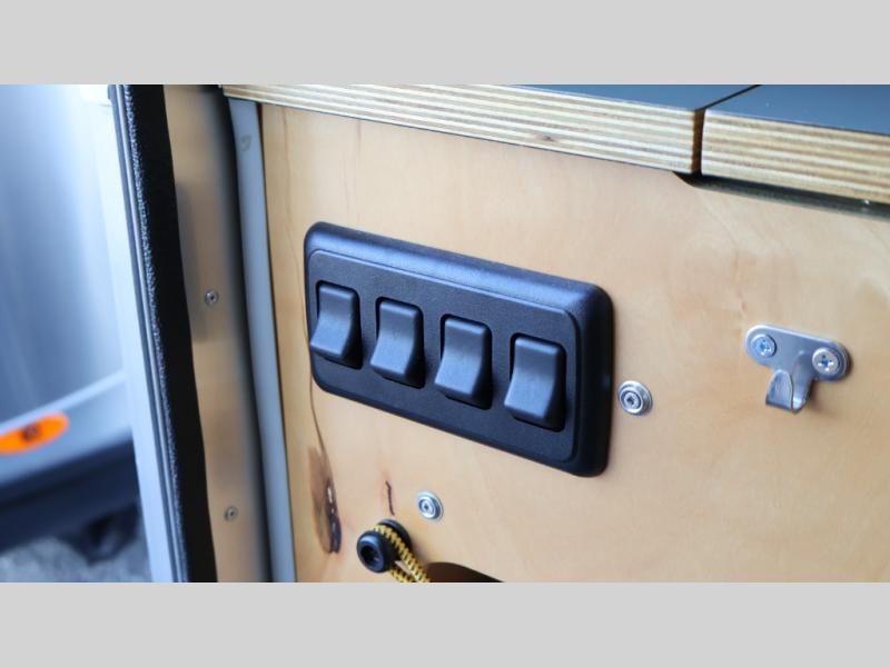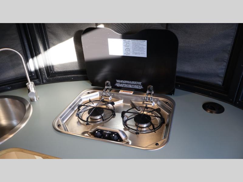 Looking for three extra inches of road clearance in an aerodynamic and easy to tow trailer? This 16X includes a black shadow window design, Goodyear all-terrain tires, solar front window protection, and stainless steel rock guards for protection against road debris. You can sleep two on the split benches or convert the half-bed on one side and the full bed that spans the back of the trailer. The two tables with benches allow you to dine with seating for five, surf the web, read a book and you can store the tables under the cushions. Get cleaned up in the wet bath complete with a shower, toilet and sink. And the cook will love the views while using the two-burner gas stove, sink and refrigerator. This Basecamp also offers front panoramic windows, storage above the propane tanks, solar panel input, and a rear hatch allowing you to take your snowboards, skis, paddleboards and/or kayaks, plus an exterior shower and optional solar panels, plus more!