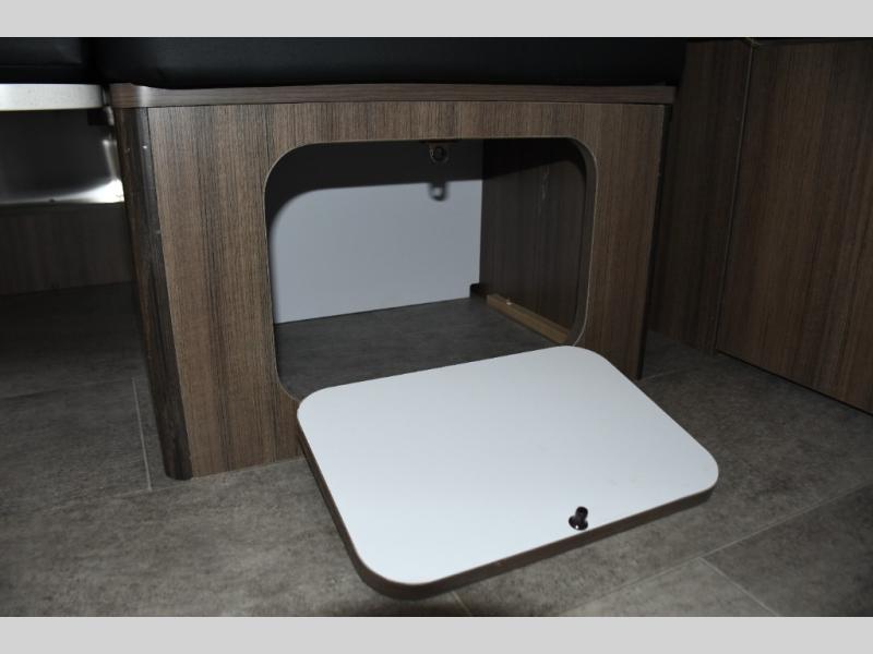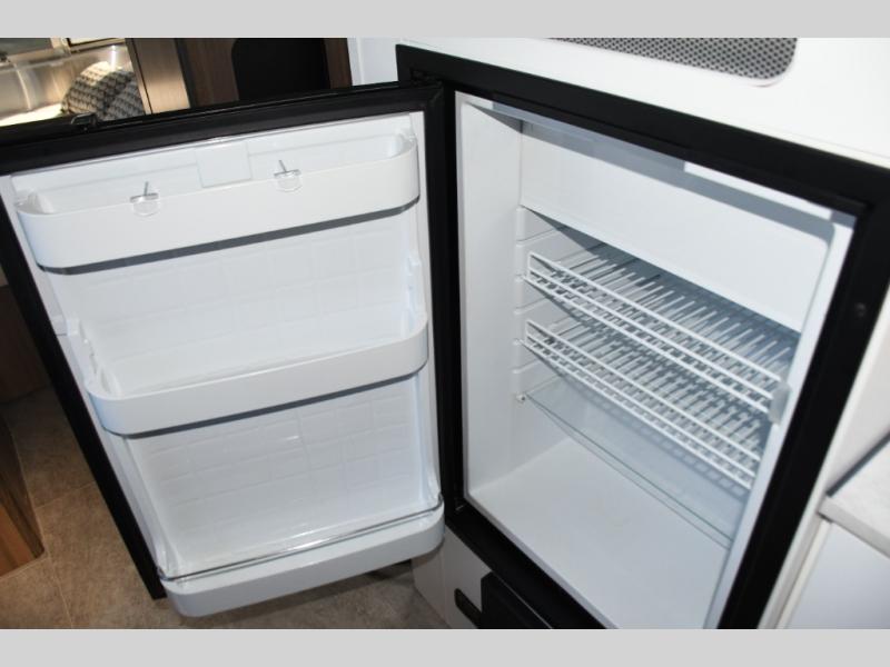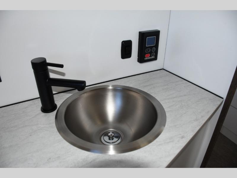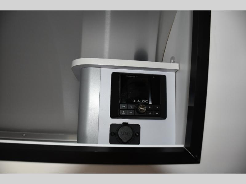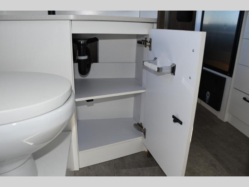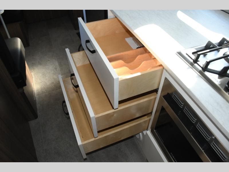 Inside the Caravel 20FB, you’ll find a bright and inviting interior thanks to panoramic windows that flood the space with natural light. The front bed provides a cozy, relaxing retreat with storage underneath to keep personal items organized. Cleverly designed cabinetry, closets, and drawers throughout make packing and storing gear simple and convenient.