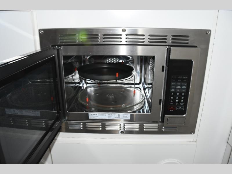 The rear living area offers versatility for relaxing, dining, or entertaining, and the compact galley comes equipped with quality appliances, durable countertops, and efficient storage for effortless meal prep. The well-planned bathroom provides convenience and comfort, ideal for both weekend trips and longer excursions.