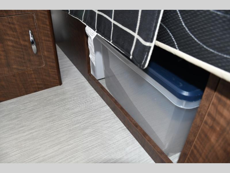 Step inside and you’ll find a light-filled interior with panoramic windows that bring the outdoors in, creating a welcoming atmosphere wherever you park. The rear bedroom features a comfortable walkaround queen bed with abundant wardrobe and overhead storage, giving you a peaceful, private retreat at the end of the day. The central living and dining area offers flexible space for relaxing, entertaining, or gathering for meals with family and friends.